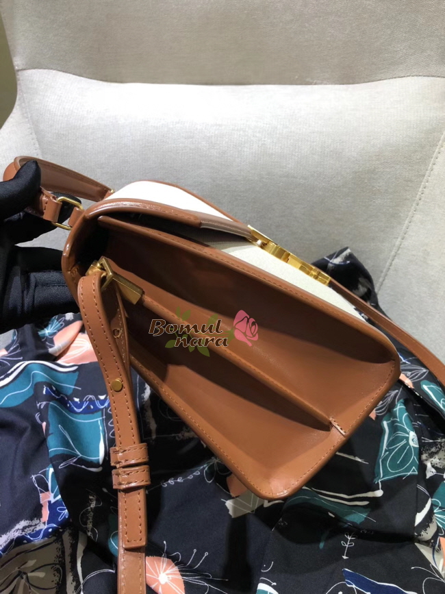 전면에 브론즈 메탈 하드웨어 생 로랑 로고를 통해