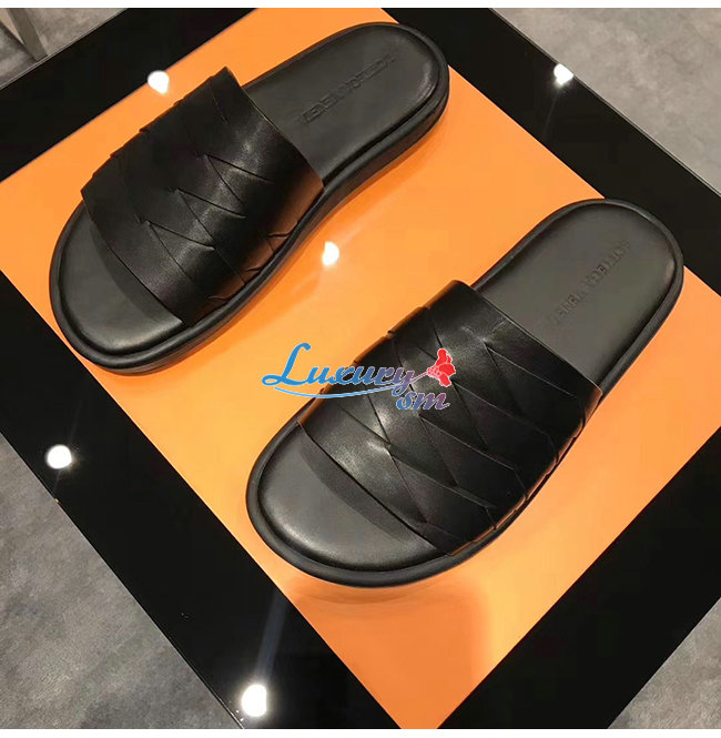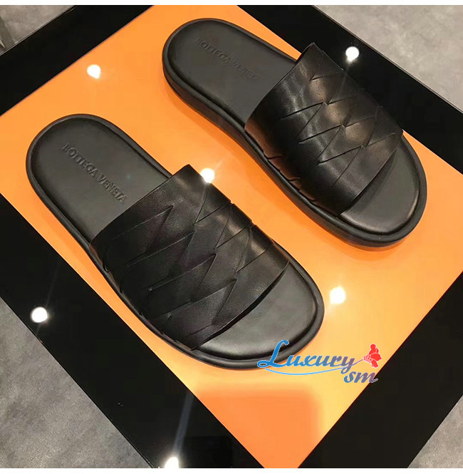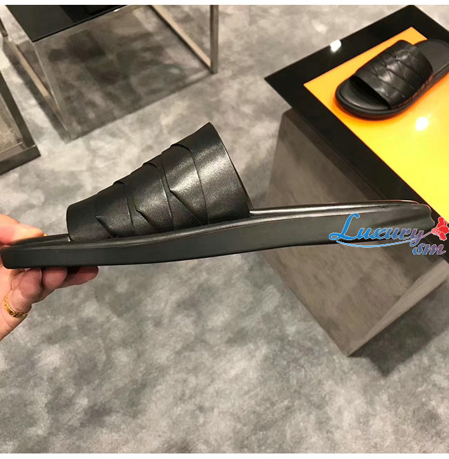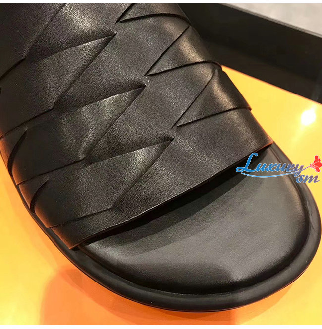 BOTTEGA VENETA608731 보테가 베네타 네로 송아지 가죽 슬라이드 샌들