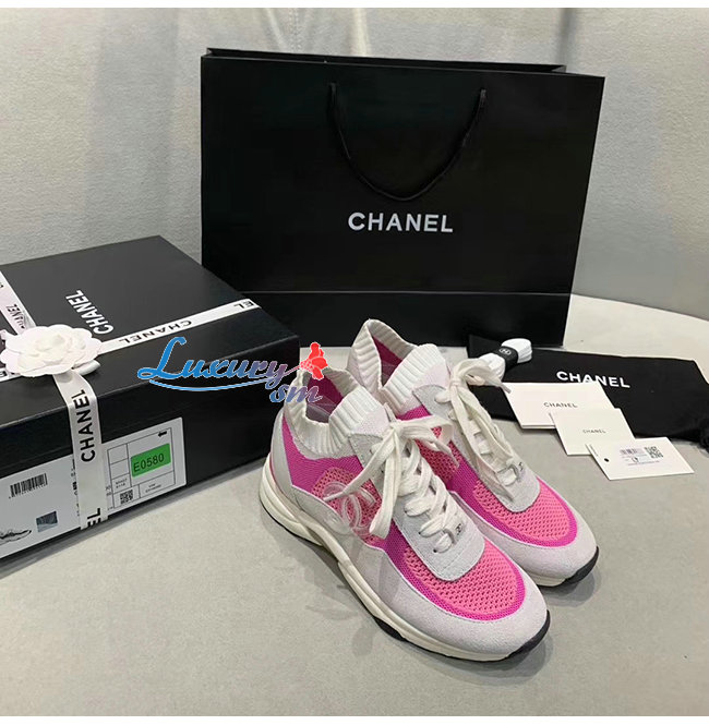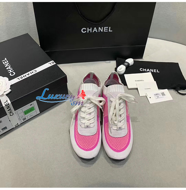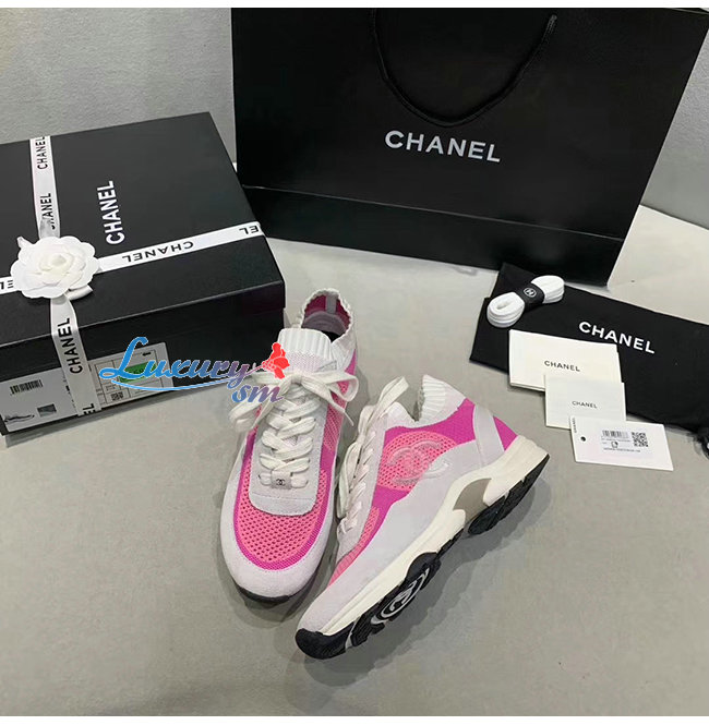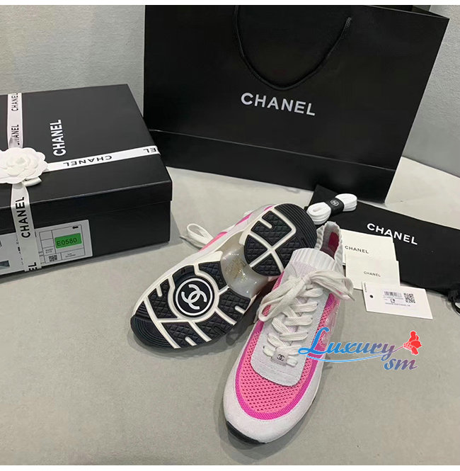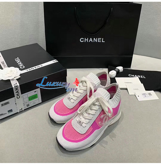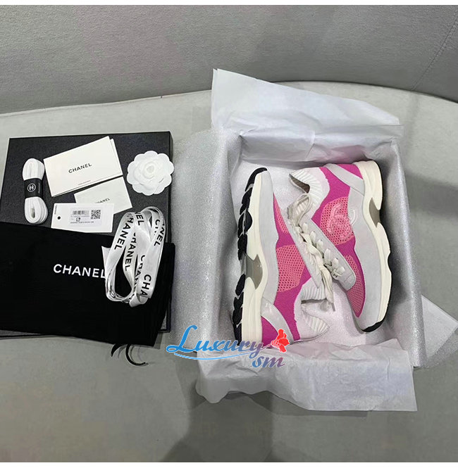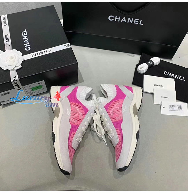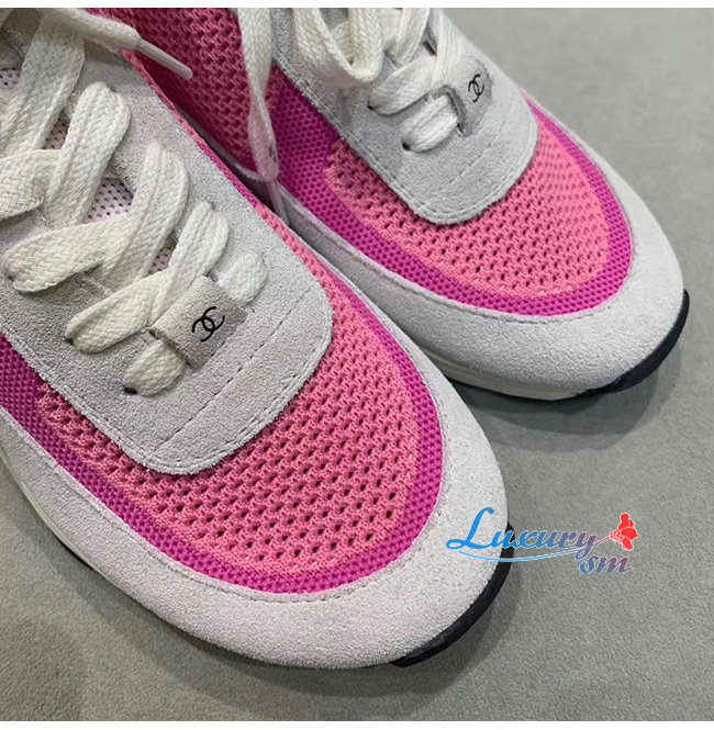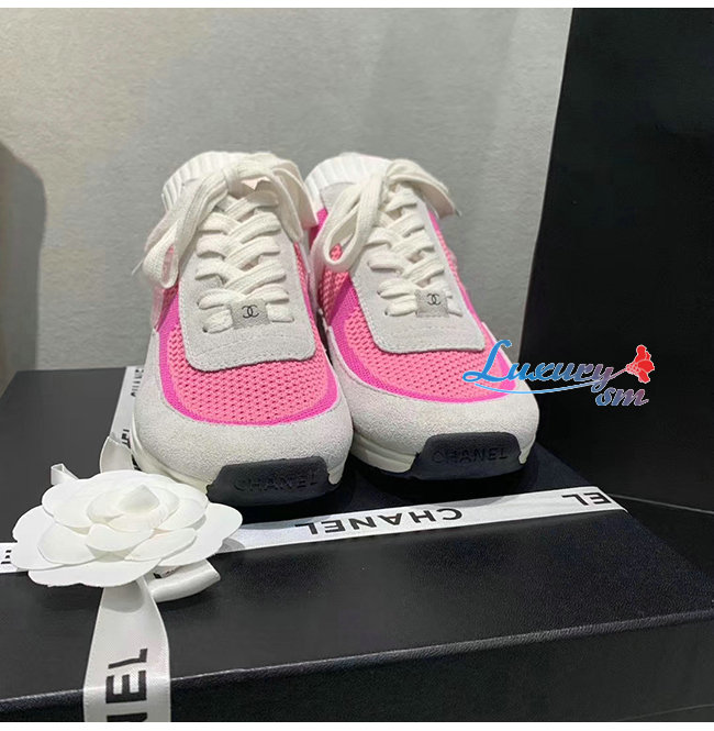 CHANEL-G36258 샤넬 핑크/화이트 패브릭 스웨이드 카프스킨 스니커즈