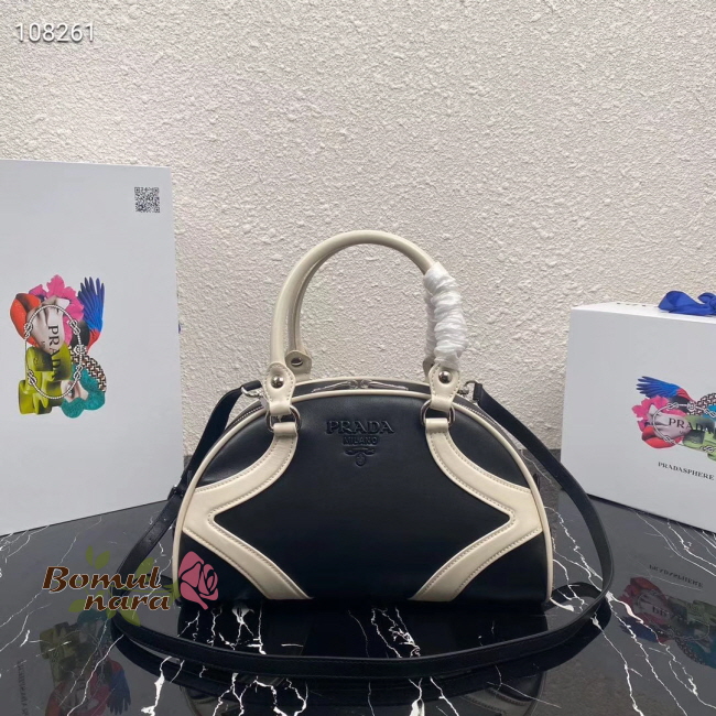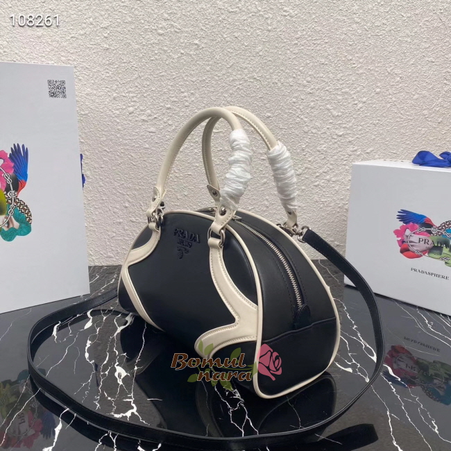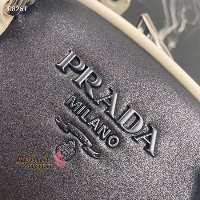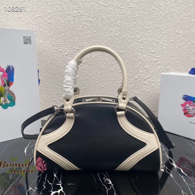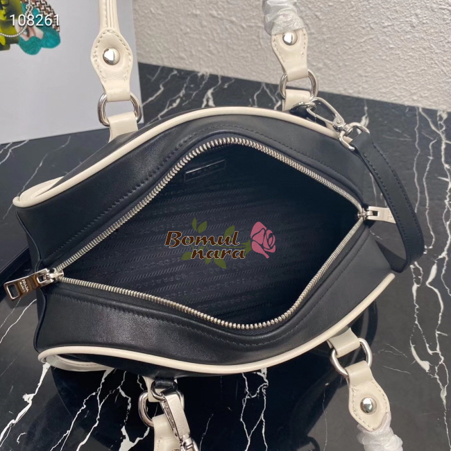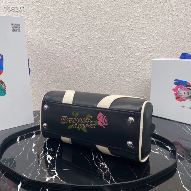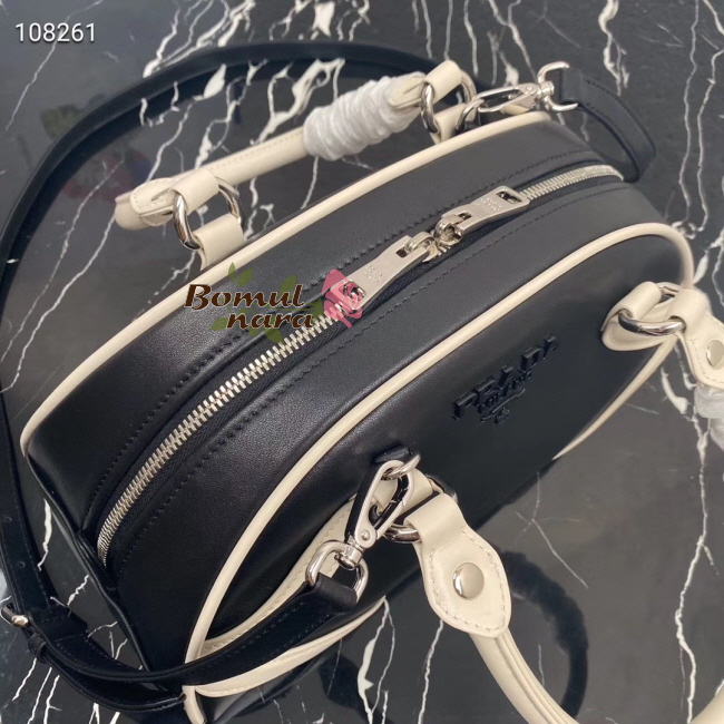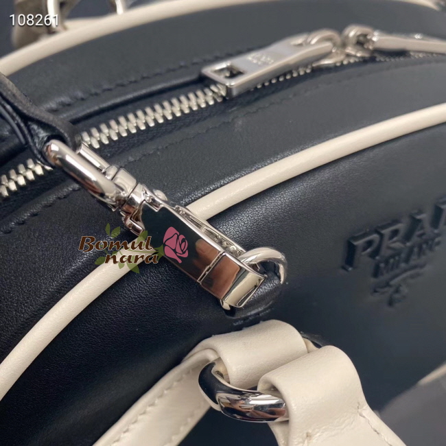 [스페셜오더]PRADA-1BB070 프라다 블랙/화이트 레터링 로고 숄더 볼링백