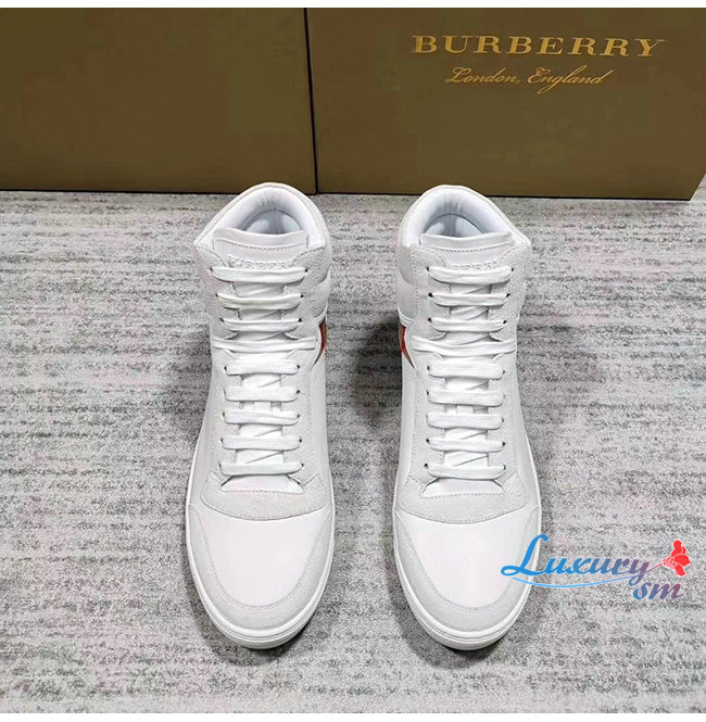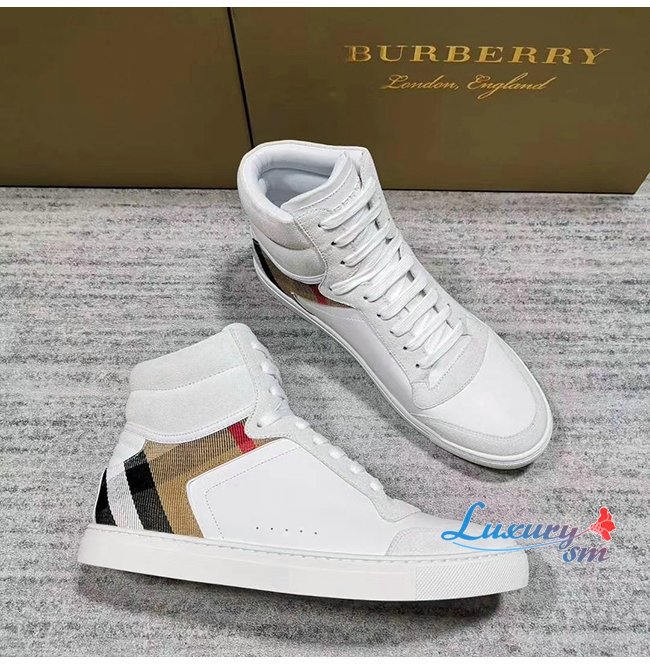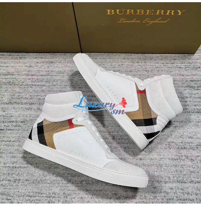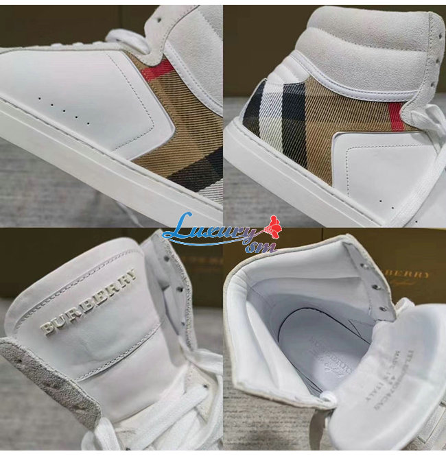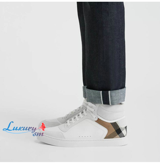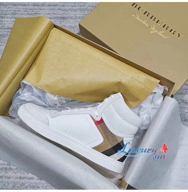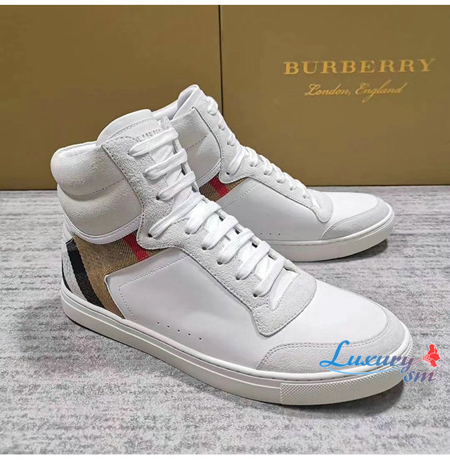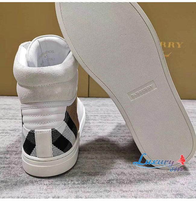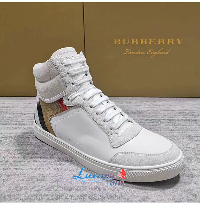 [스페셜오더]BURBERRY-40540201 버버리 화이트 송아지 가죽 하우스 체크 하이톱 스니커즈
