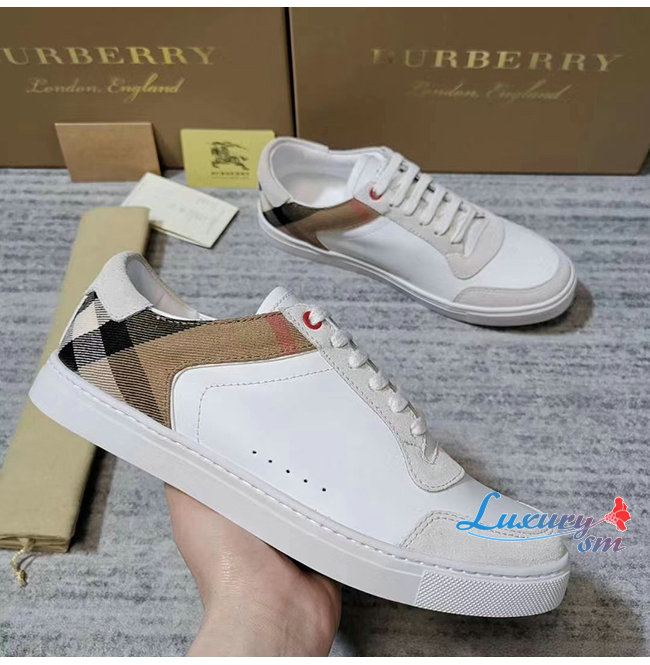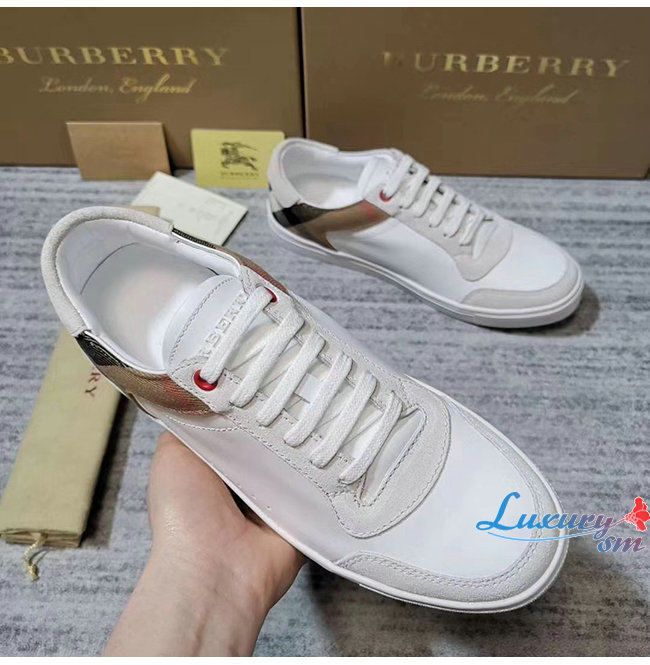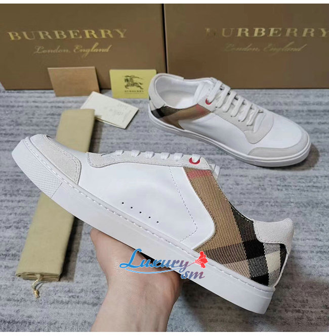 [스페셜오더]BURBERRY-80241251 버버리 화이트 레더 스웨이드 하우스 체크 스니커즈