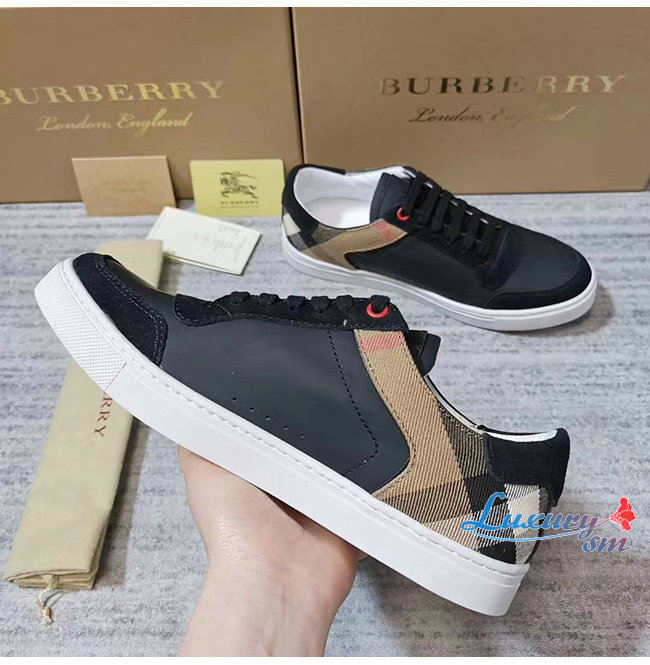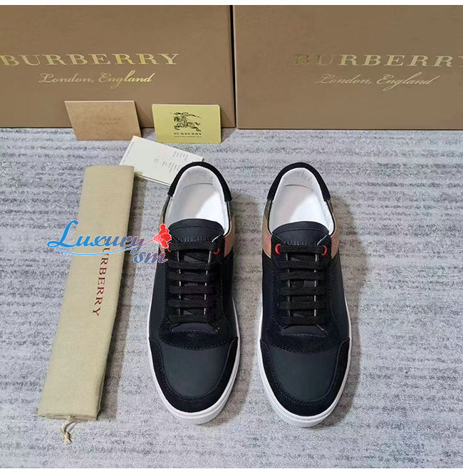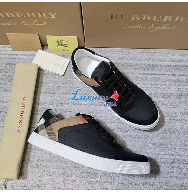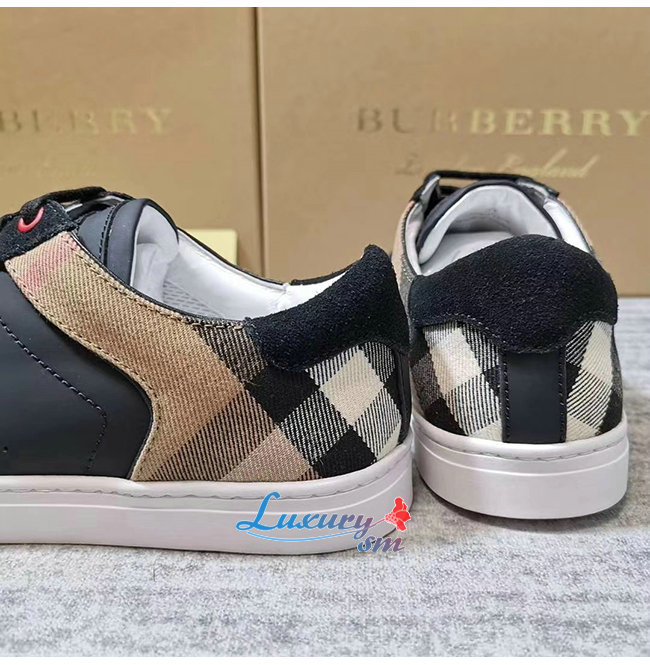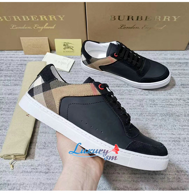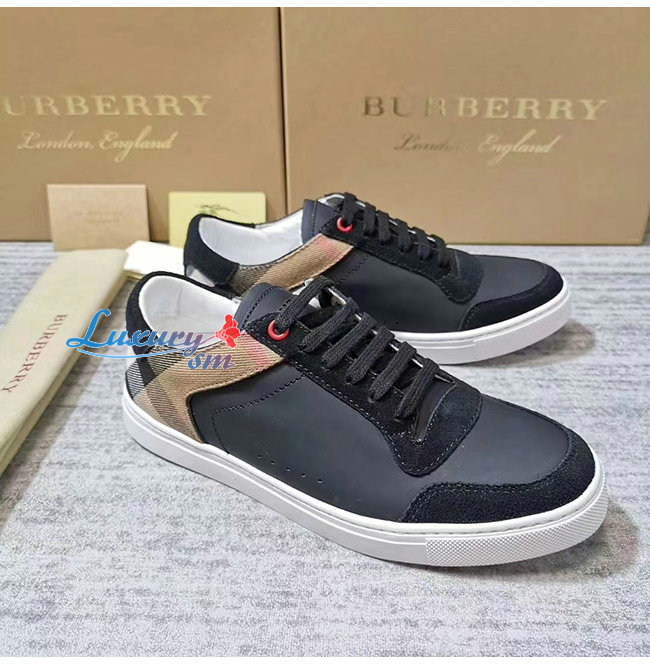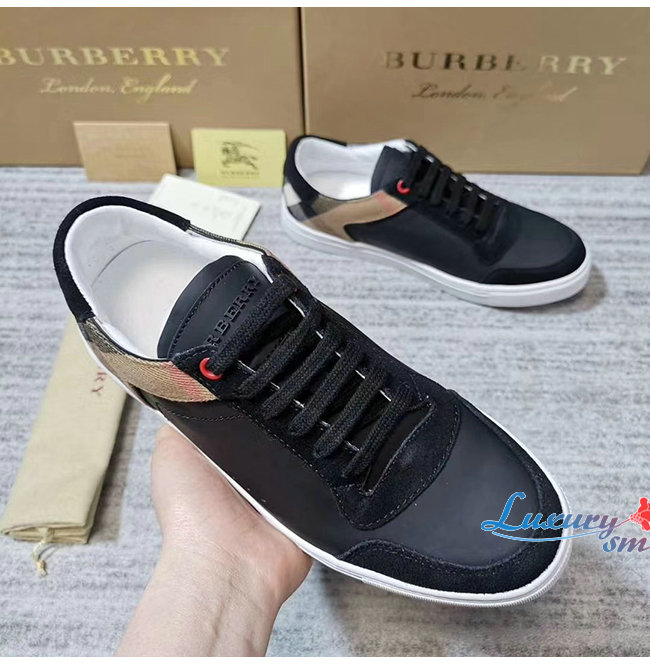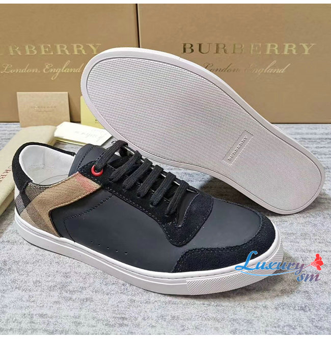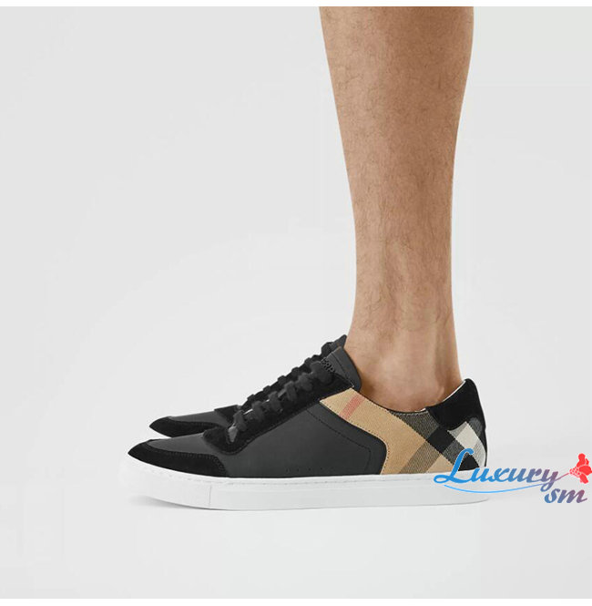 [스페셜오더]BURBERRY-80241241 버버리 블랙 레더 스웨이드 하우스 체크 스니커즈