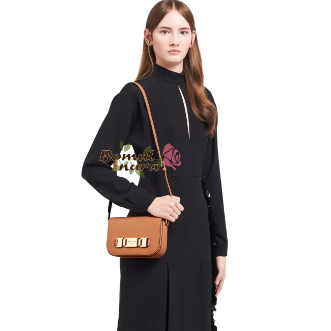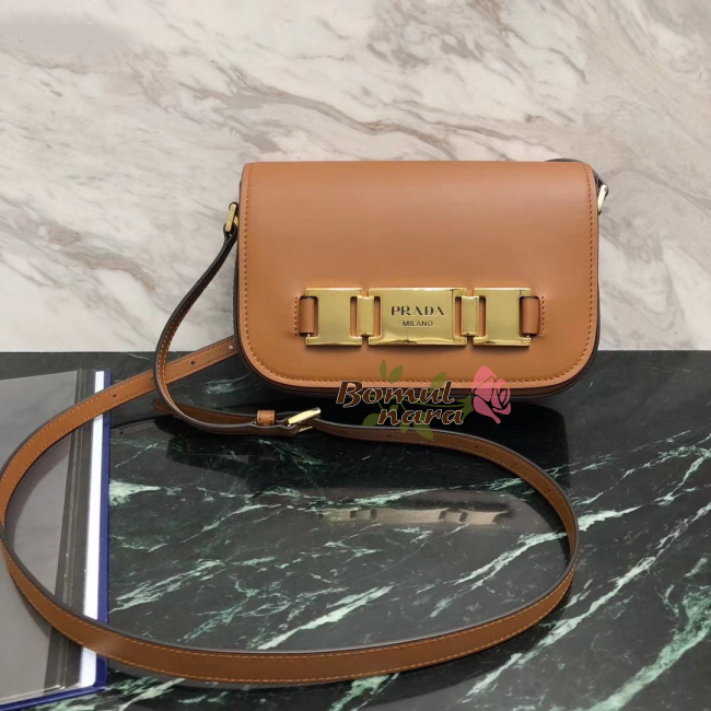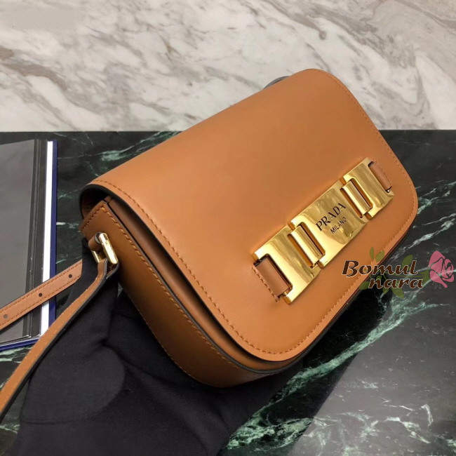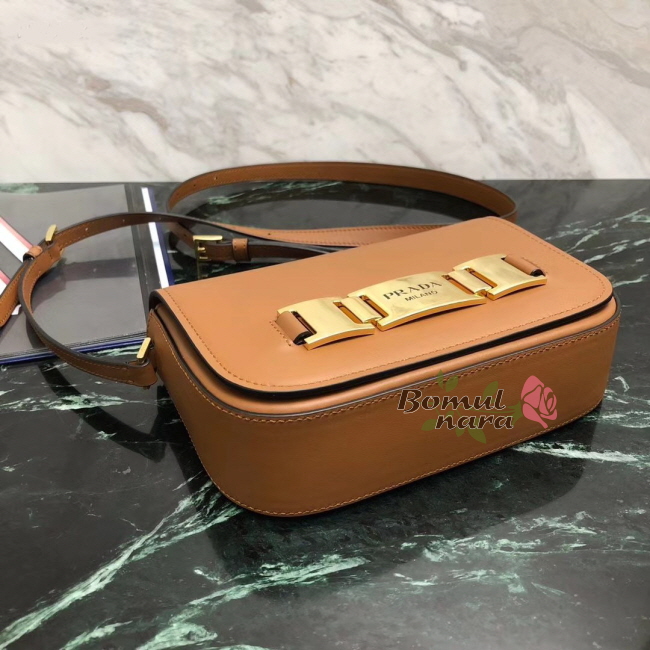 [스페셜오더]PRADA-1BD244 프라다 코냑 로고 메탈 버클 플랩백