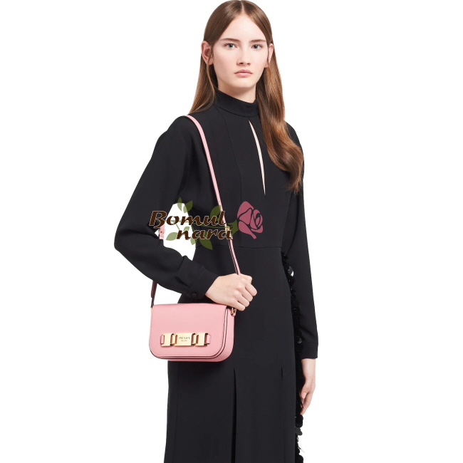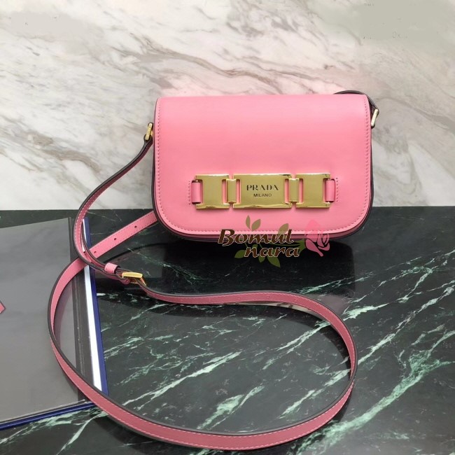 [스페셜오더]PRADA-1BD244 프라다 페탈 핑크 로고 메탈 버클 플랩백