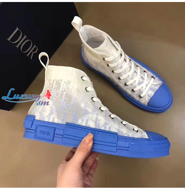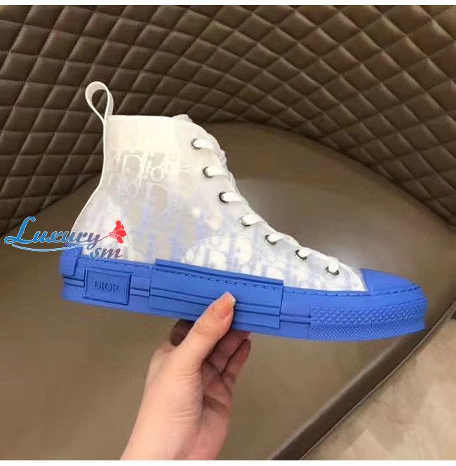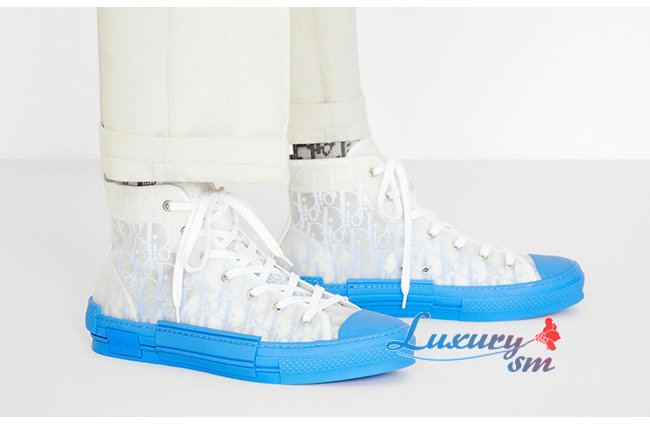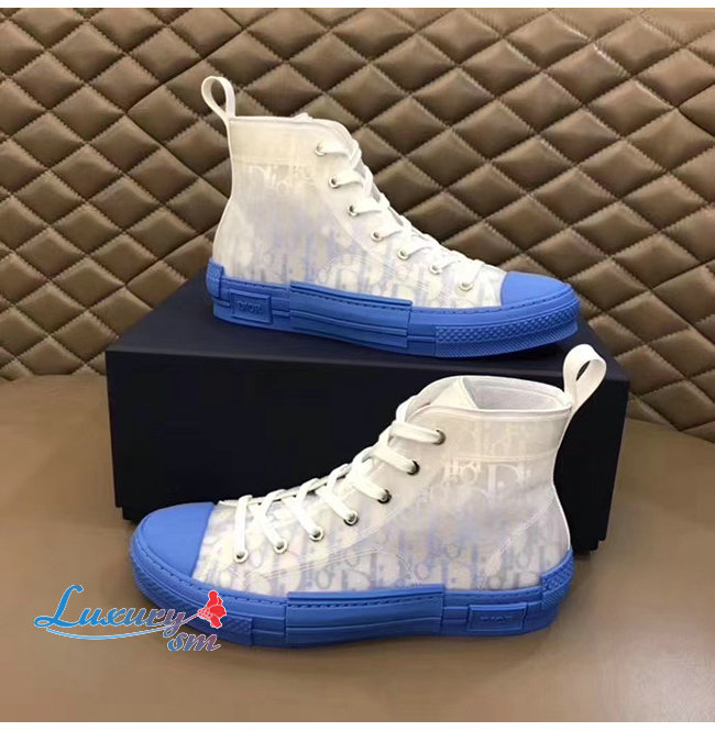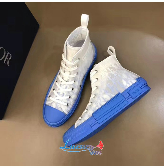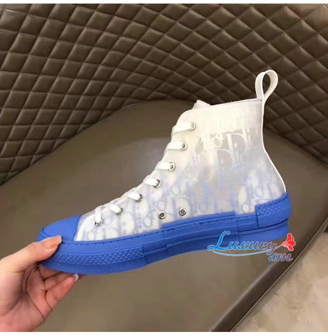DIOR-3SH118 디올 그라데이션 블루 Dior Oblique 캔버스 B23 하이탑 스니커즈 남여공용