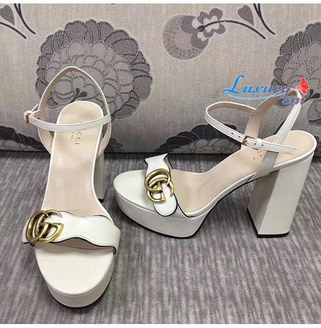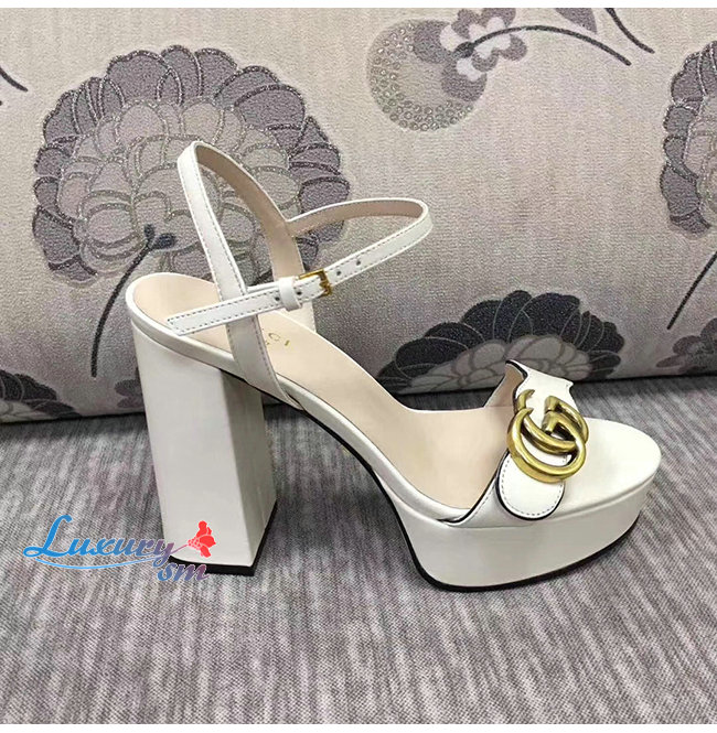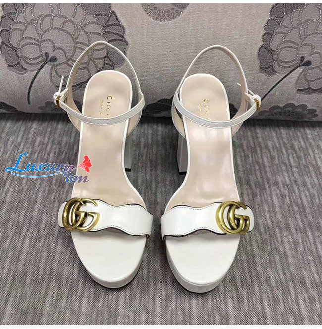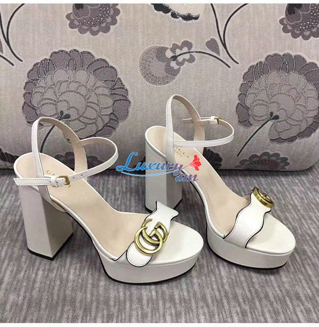 GUCCI-573022 9022 구찌 화이트 가죽 GG 마몽 플랫폼 샌들