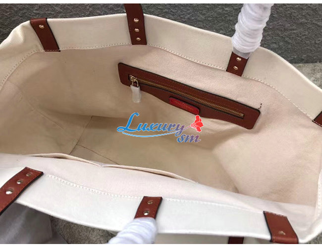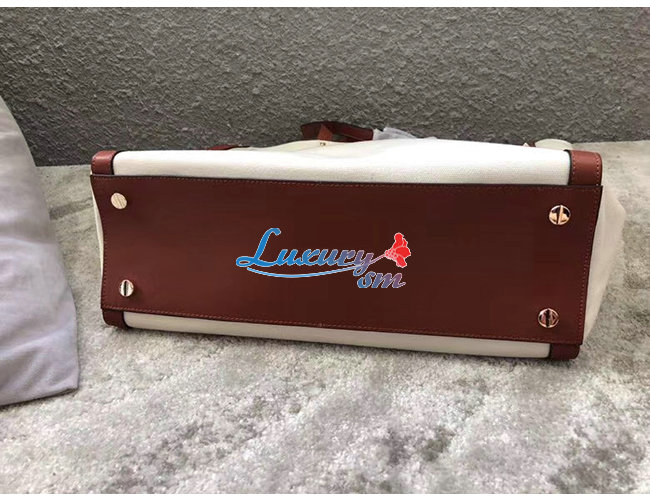 브라운 가죽 디테일 / 면 캔버스 소재 트리밍