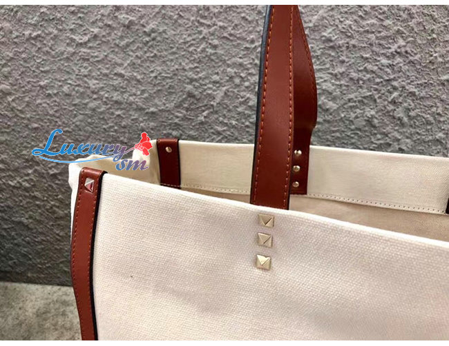 VLTN 프린트 및 가죽 디테일을 가미한 캔버스 소재의