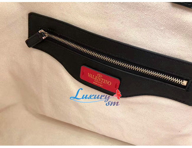 VLTN 프린트 및 가죽 디테일을 가미한 캔버스 소재의
