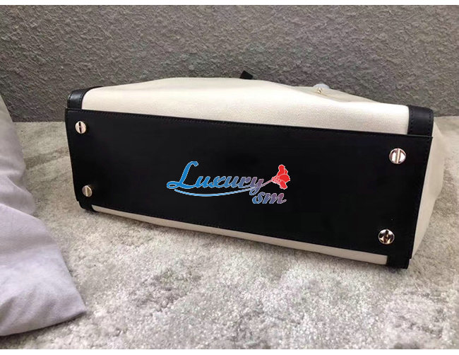 VLTN 프린트 / 블랙 가죽 디테일 / 면 캔버스 소재 트리밍