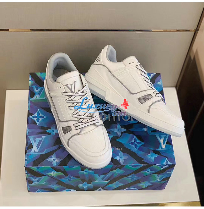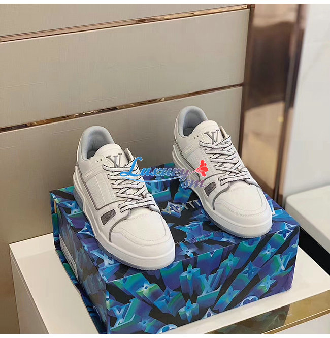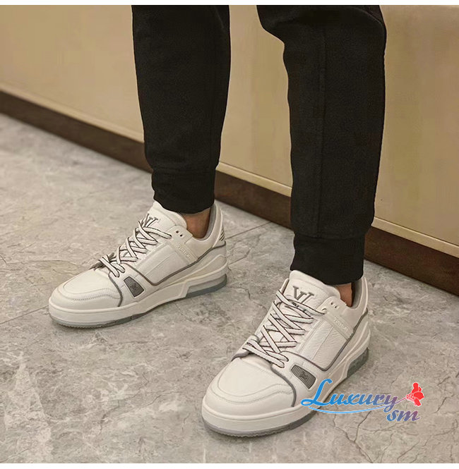 [스페셜오더]LOUIS VUITTON-1A5PZO 루이비통 화이트 그레인 송아지 가죽 LV 트레이너 스니커즈