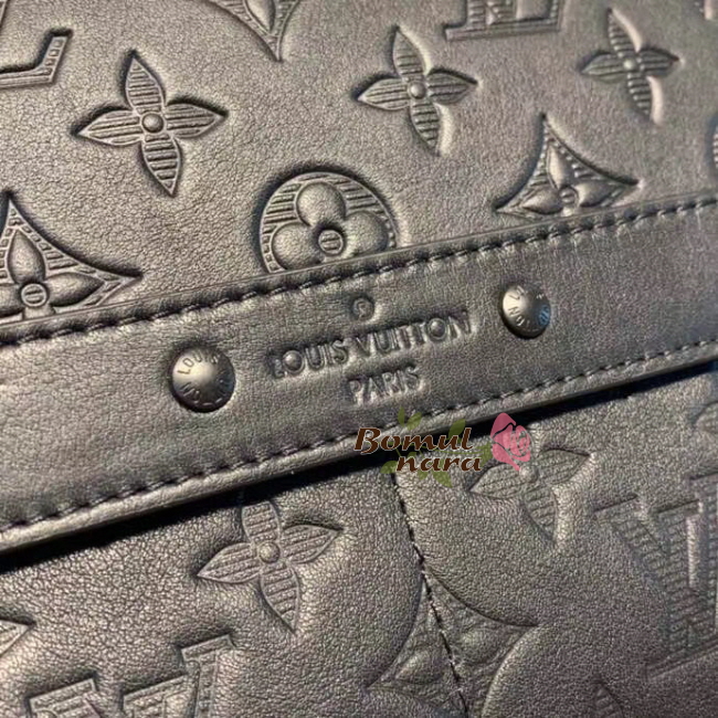 가죽으로 엠보싱 처리된 모노그램 모티프와 매트한 블랙