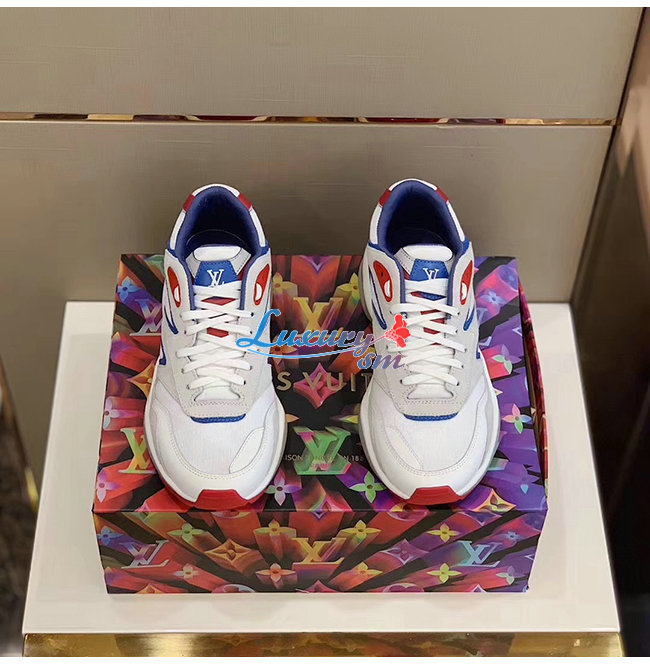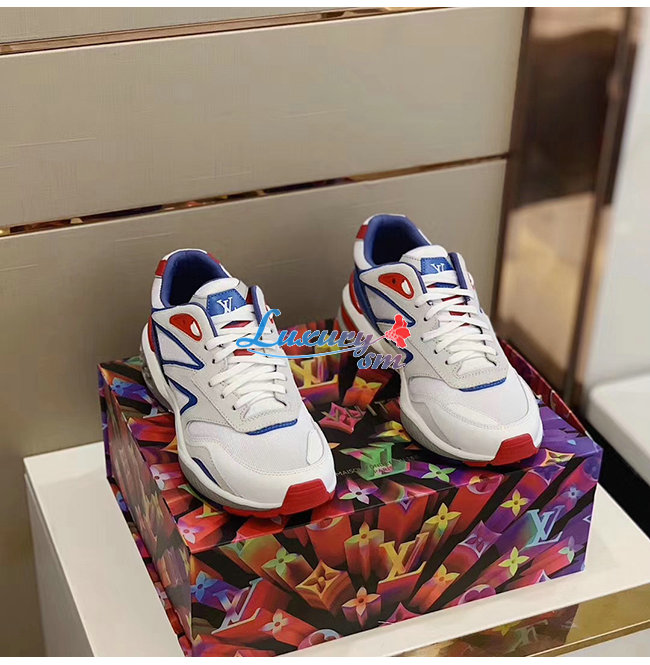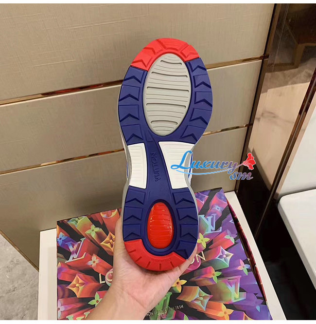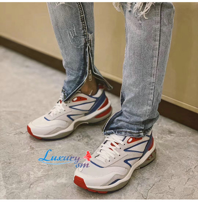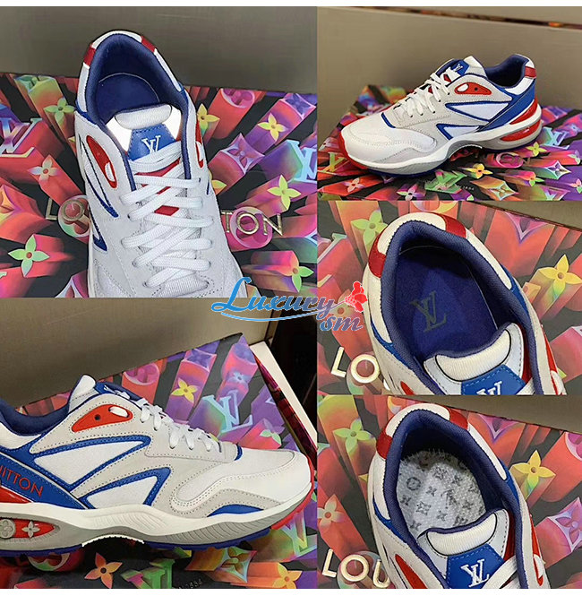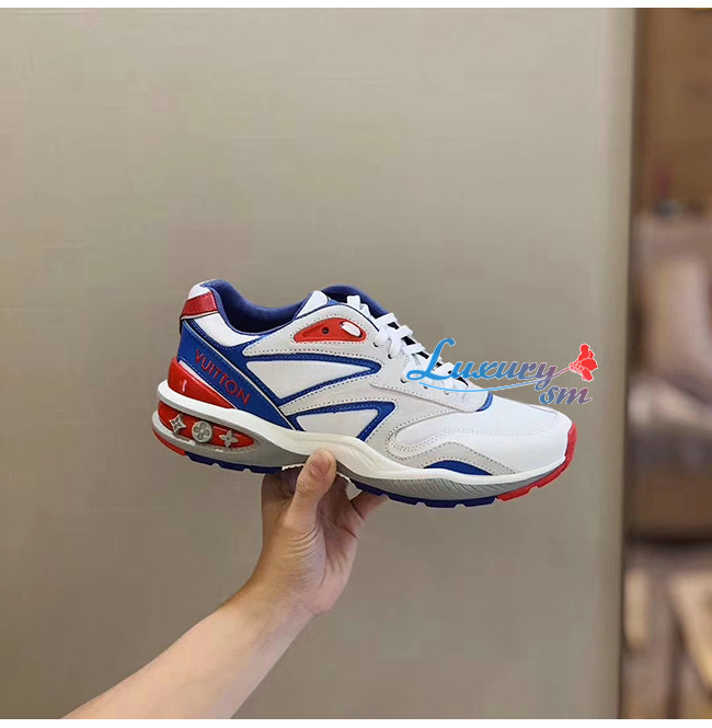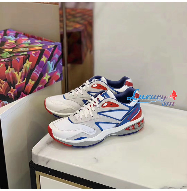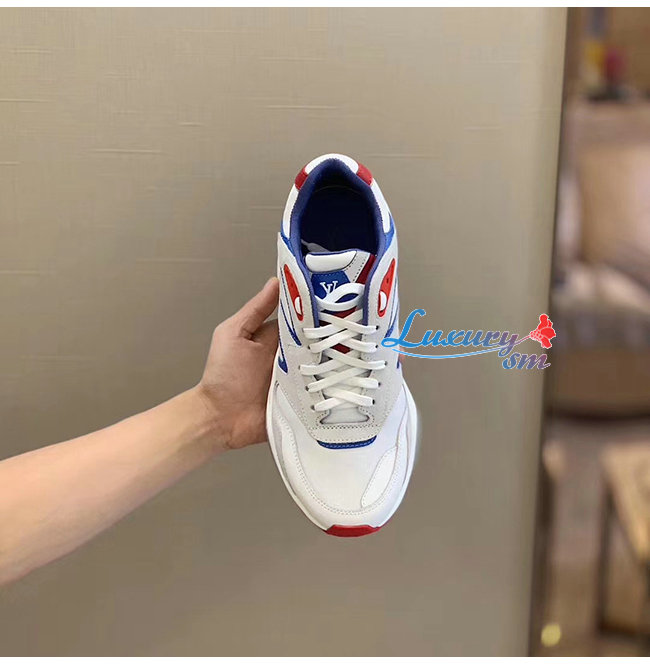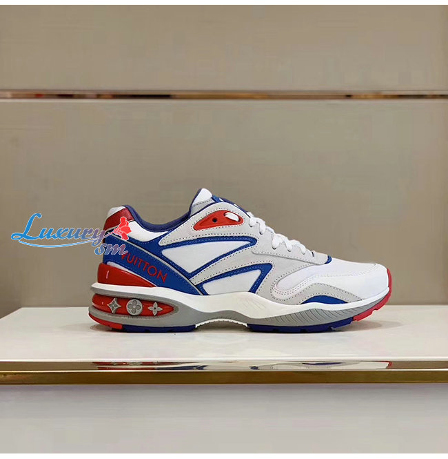 [스페셜오더]LOUIS VUITTON-1A7QVY 루이비통 화이트/블루/레드 송아지 가죽 모노그램 엠보스드 텍스타일 LV 트레일 스니커즈