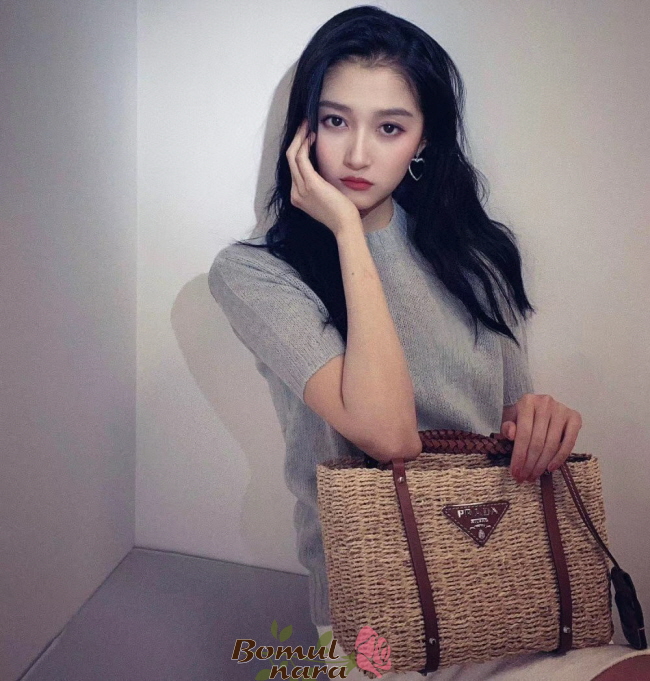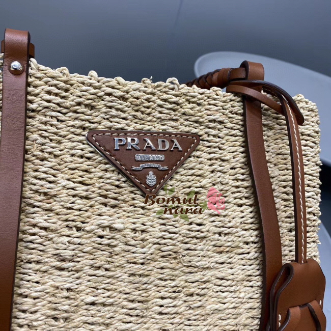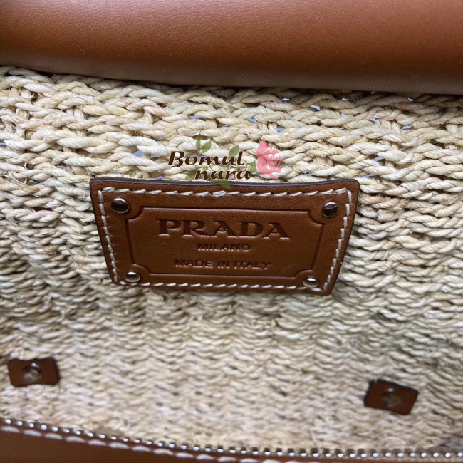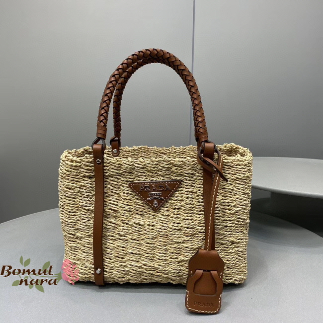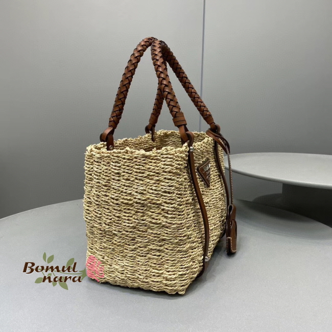 [스페셜오더]PRADA-1BG336 프라다 코냑 메이즈 패브릭 우븐 핸들 토트백