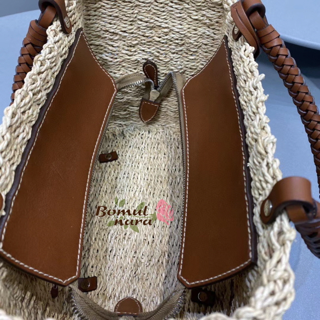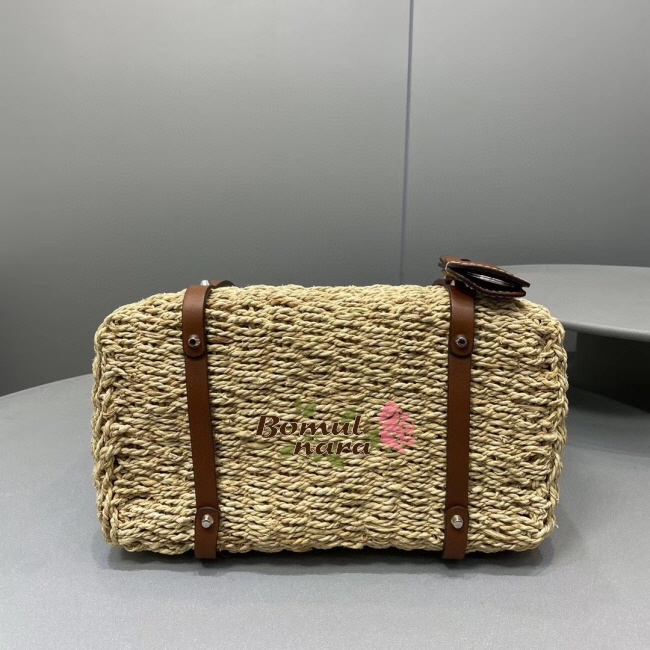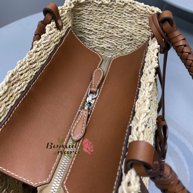 세련된 매력이 돋보이는 천연 패브릭 백입니다. 우븐 핸들,