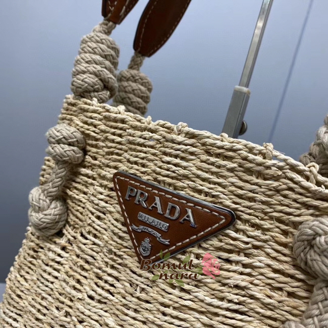 [스페셜오더]PRADA-1BG336 프라다 코냑 메이즈 패브릭 우븐 핸들 토트백