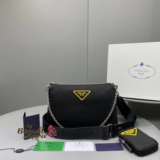 [스페셜오더]PRADA-2VH113 프라다 블랙/옐로우 고무 트라이앵글 로고 크로스 바디 백