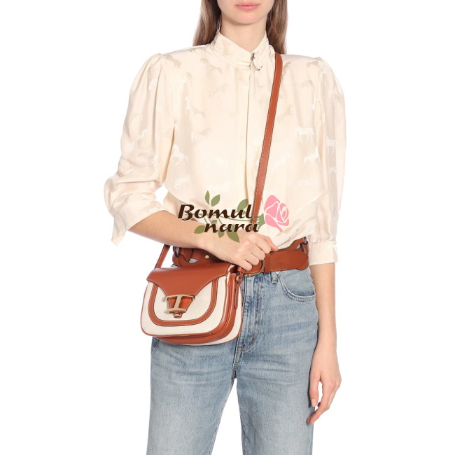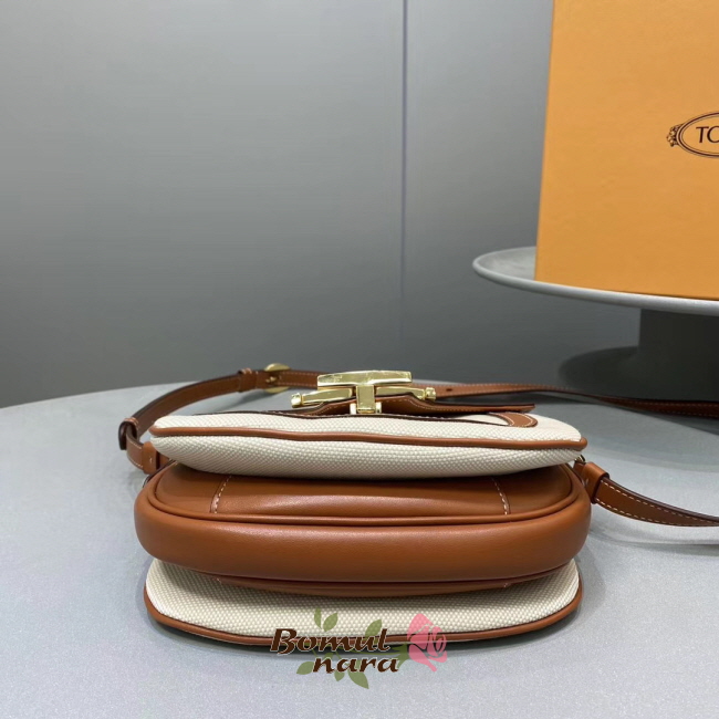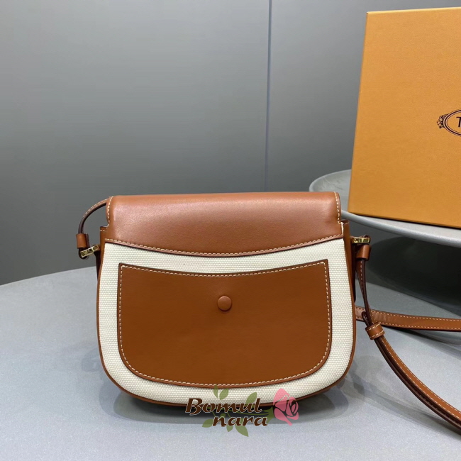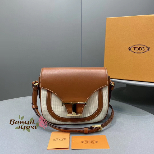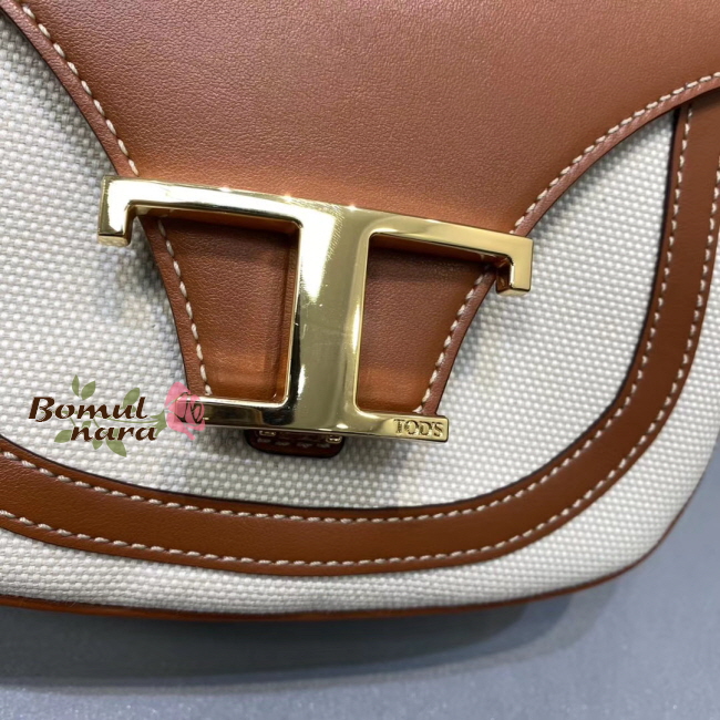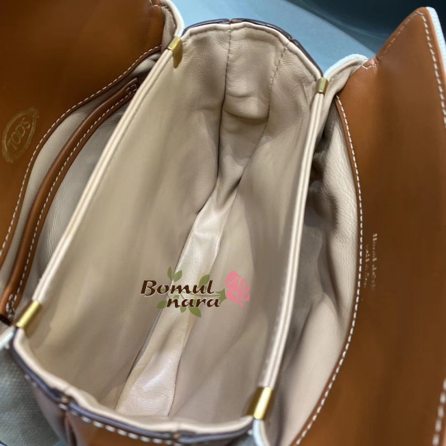[스페셜오더]TODS-토즈 브라운 가죽/베이지 캔버스 마이크로 크로스 바디백