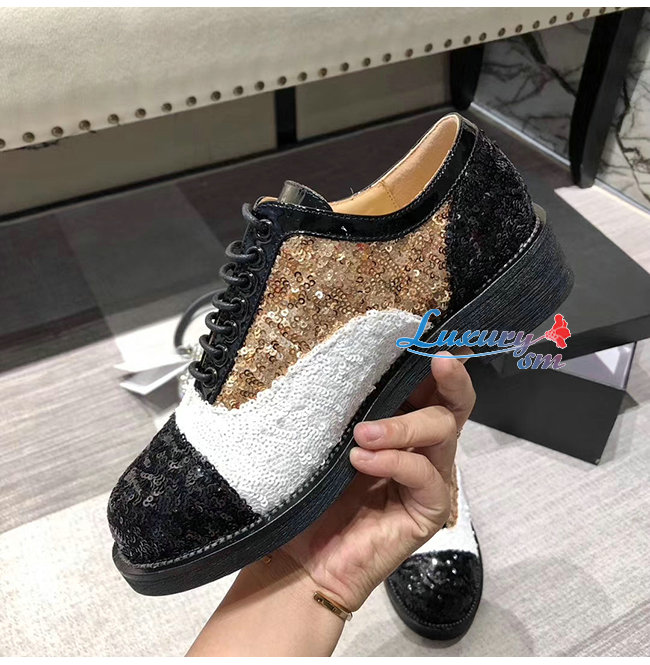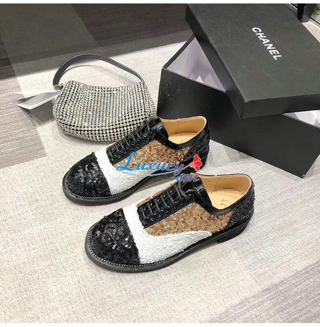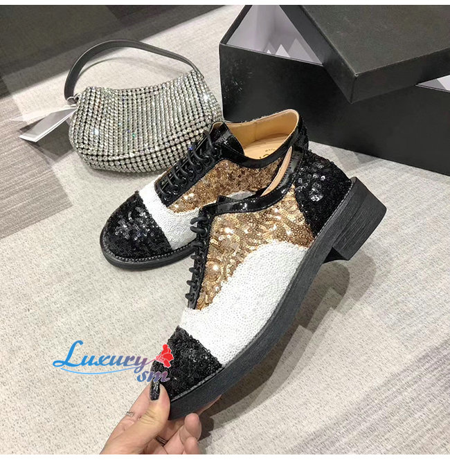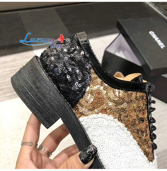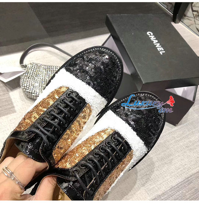 CHANEL-G36208 샤넬 멀티컬러 시퀸 페이턴트 카프스킨 레이스업