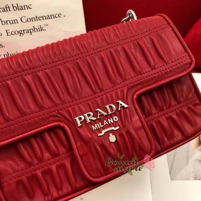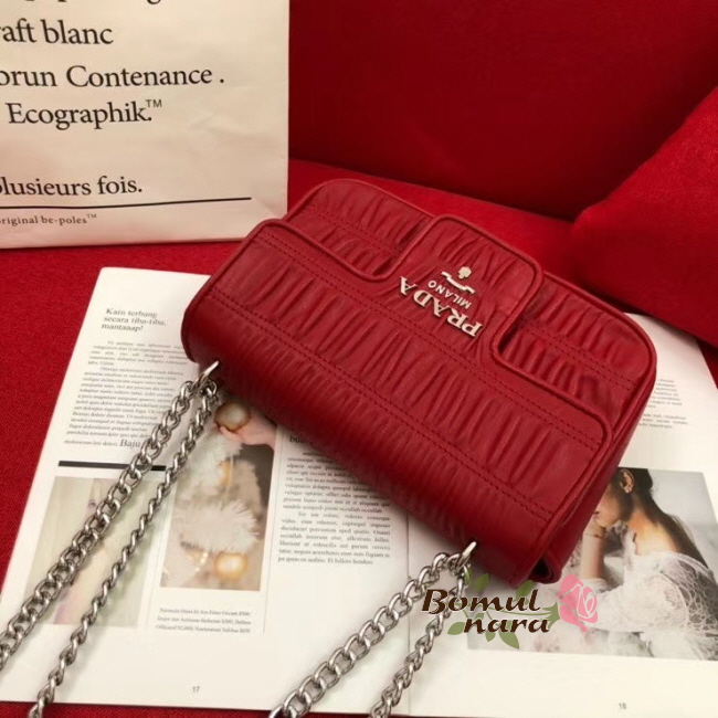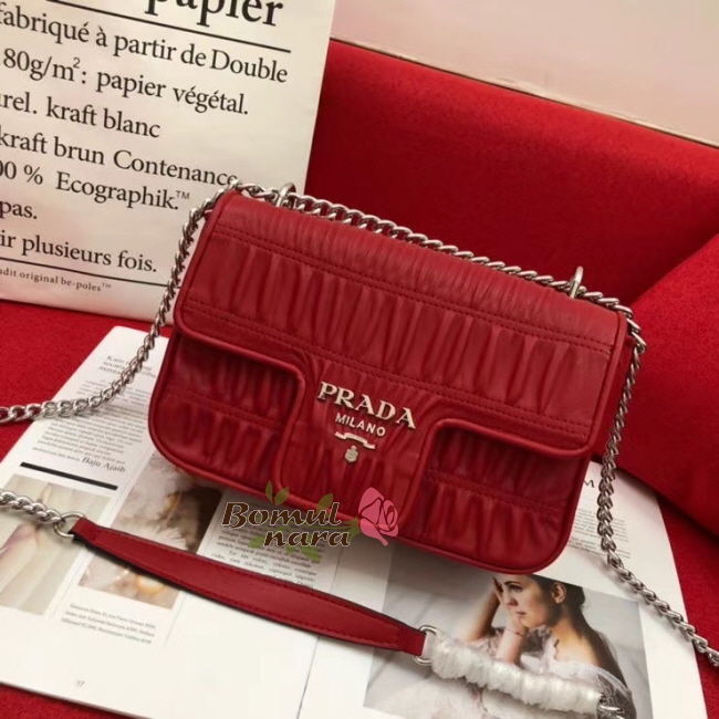 [스페셜오더]PRADA-1BD140 프라다 레드 고프레 체인 플랩 숄더백