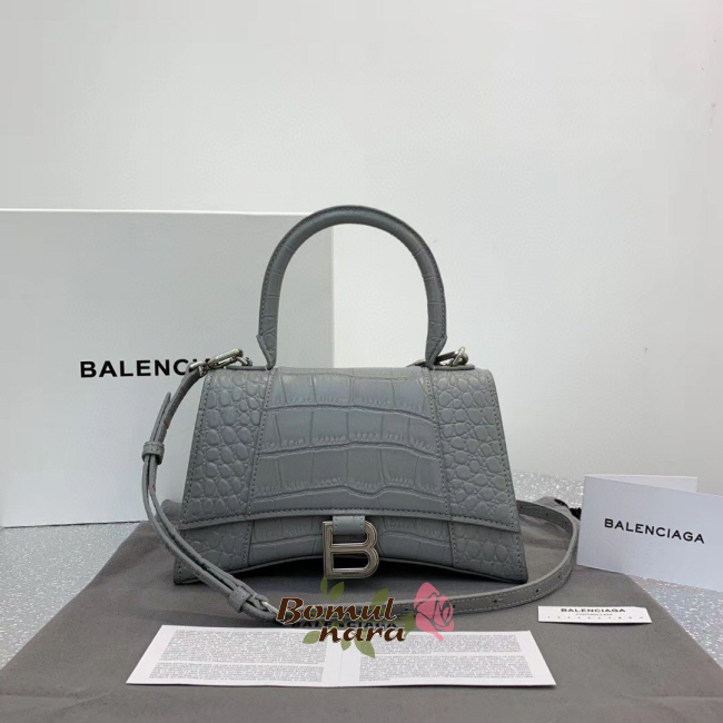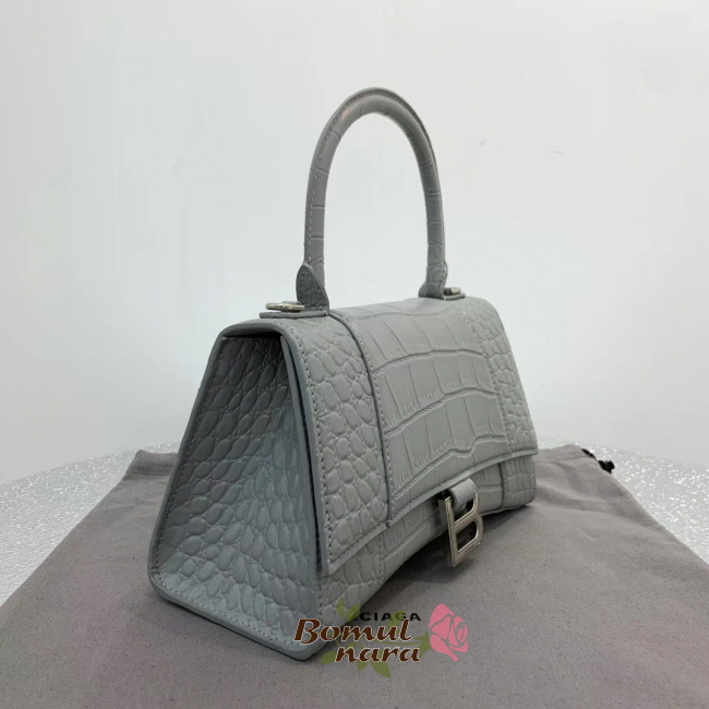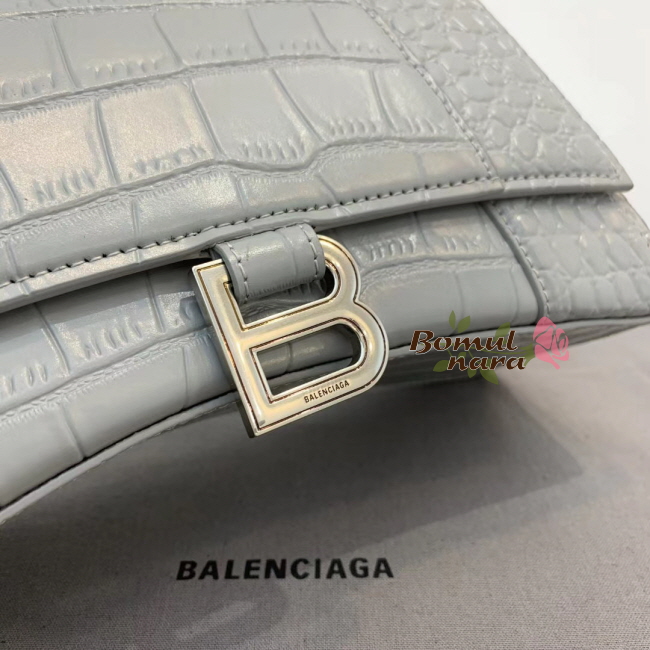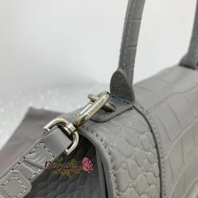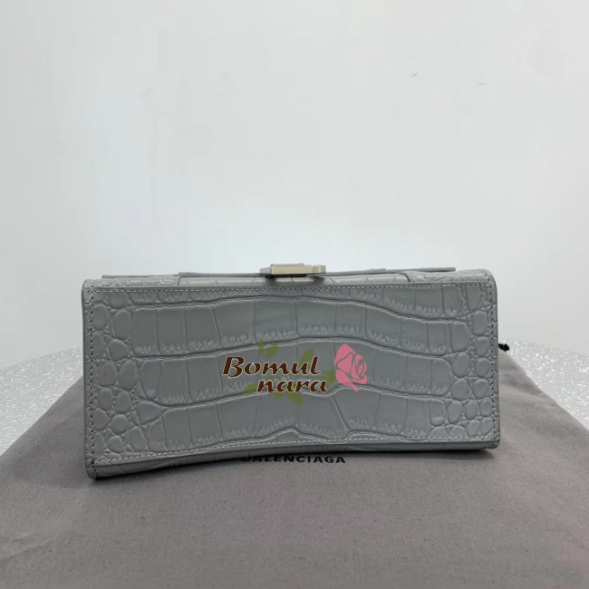 [스페셜오더]BALENCIAGA-5935461 발렌시아가 그레이 크로커다일 엠보싱 아워글래스 스몰 탑 핸들 백