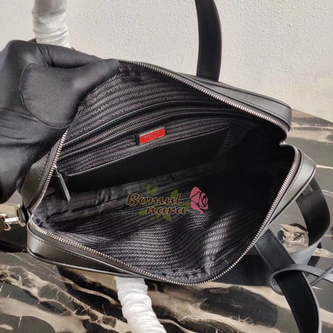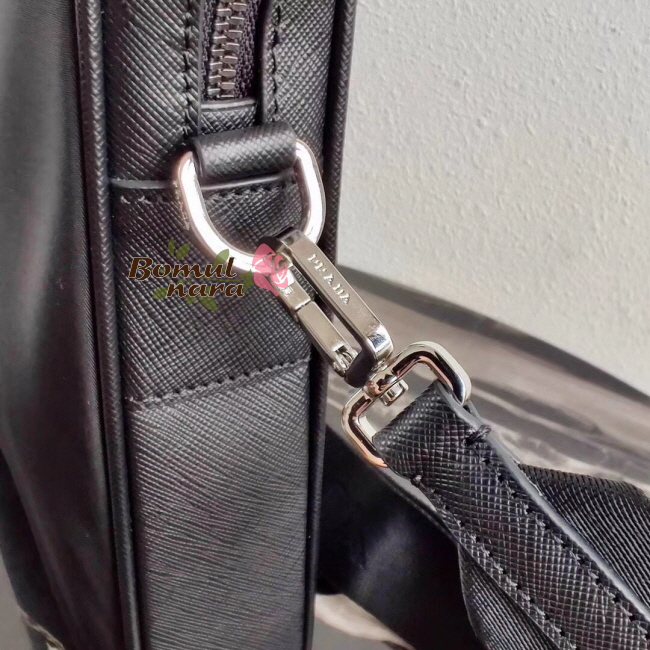 [스페셜오더]PRADA-2VE368 프라다 사피아노 꾸이르 가죽 다크 메탈 로고 블랙 브리프케이스