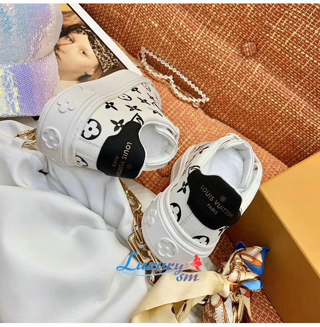 LOUIS VUITTON-1A87NI 루이비통 화이트/블랙 모노그램 송아지 가죽 타임 아웃 스니커즈 남여공용