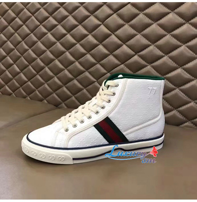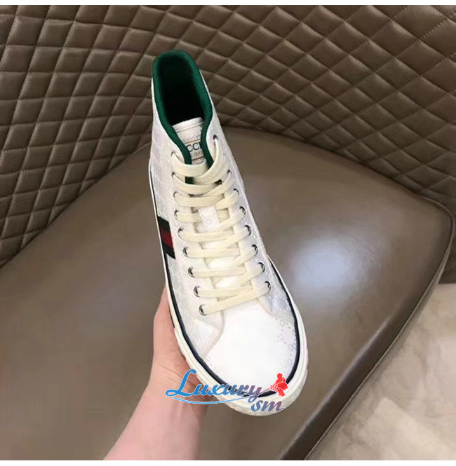 GUCCI-627838 9074 구찌 화이트 미니 GG 자카드 패브릭 구찌 테니스 1977 하이탑 스니커즈