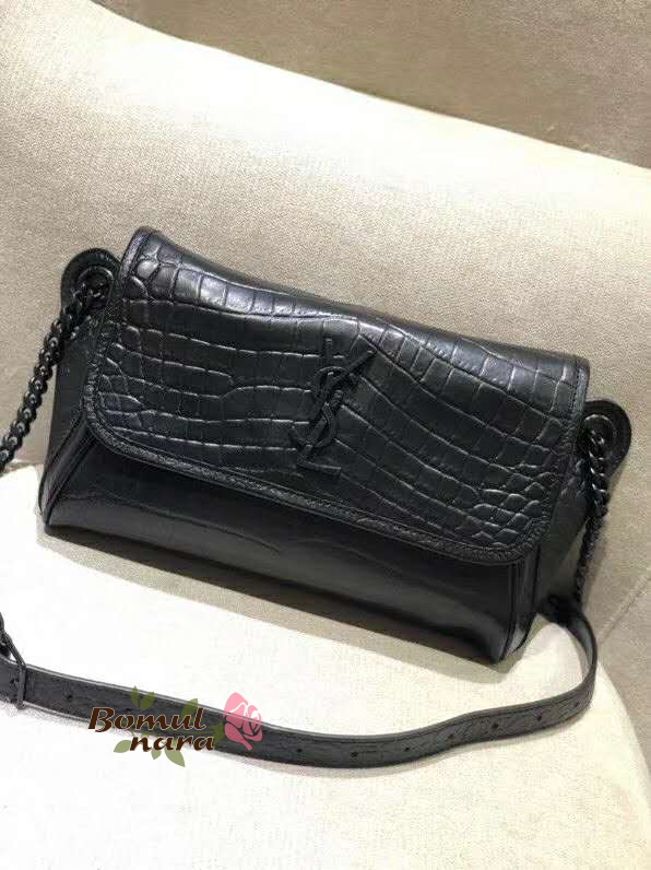 [스페셜오더]SAINT LAURENT-5912281 생 로랑 블랙 크로커다일 무늬 가죽 니키 벨트/바디 백