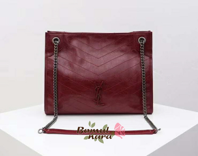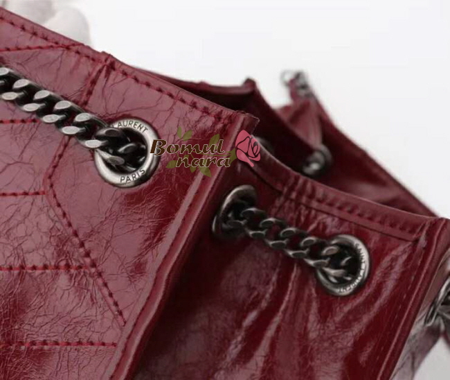 [스페셜오더]SAINT LAURENT-577999 생 로랑 다크 리전 레드 크링클드 가죽 미디엄 니키 쇼핑백