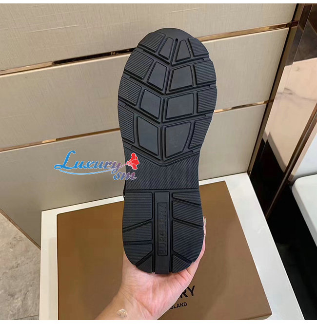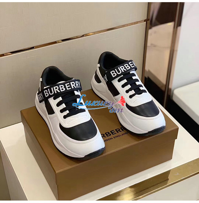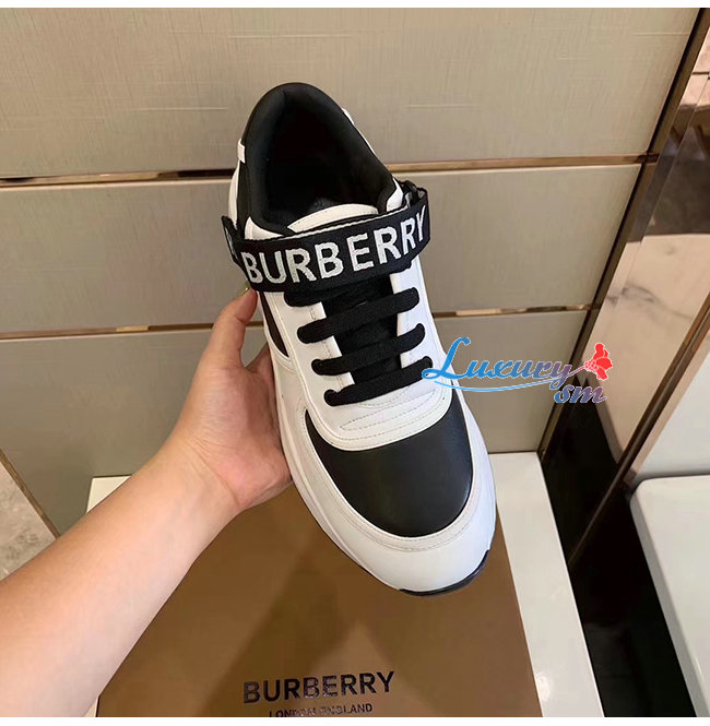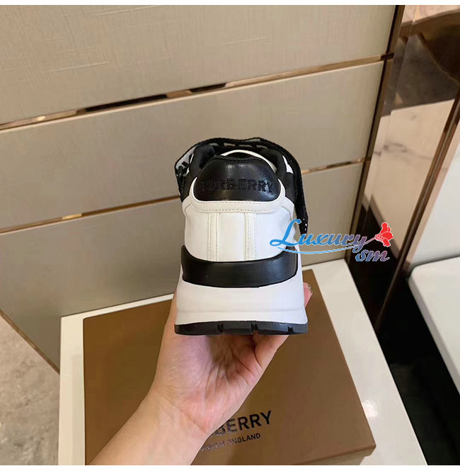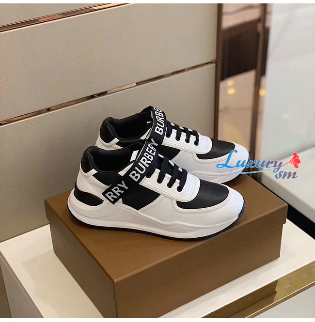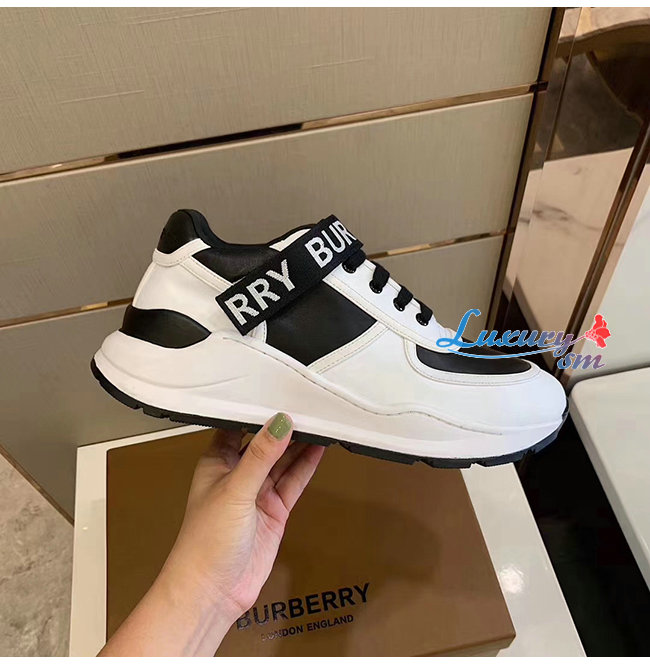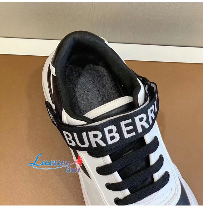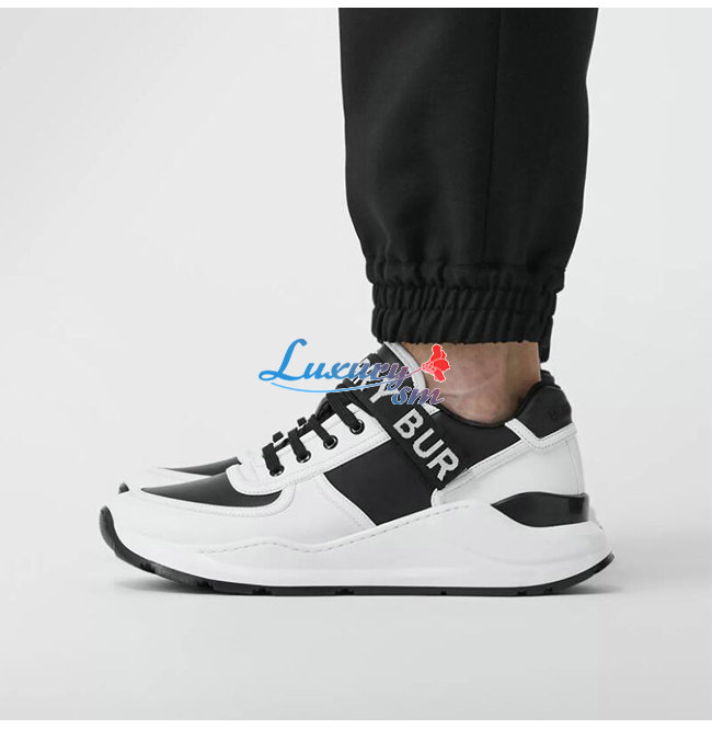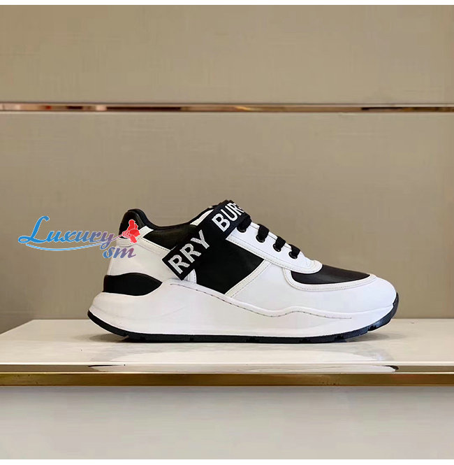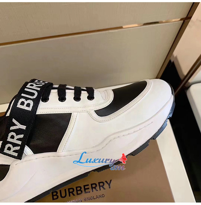 BURBERRY-80098011 버버리 블랙/화이트 로고 디테일 가죽 나일론 스니커즈