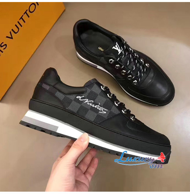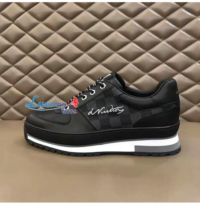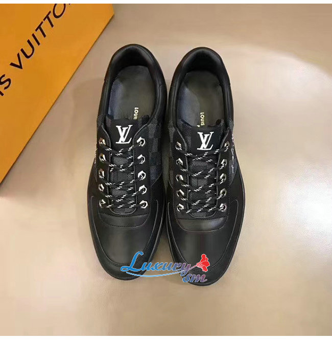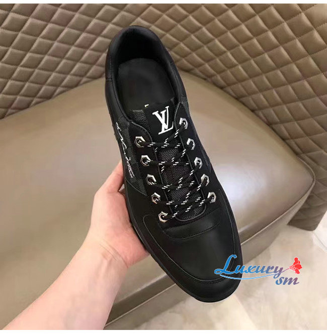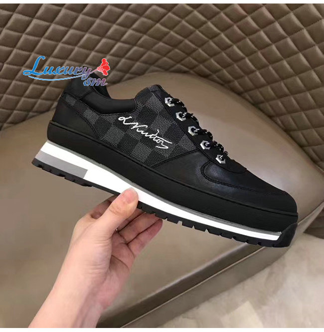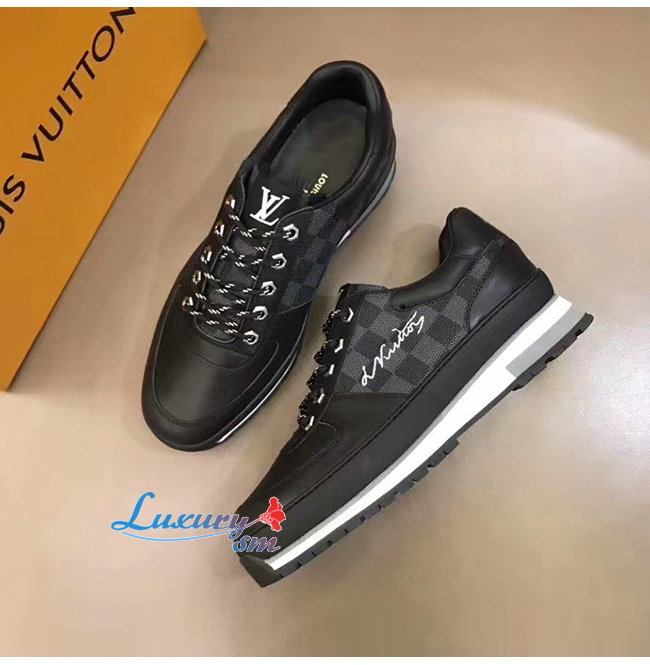 LOUIS VUITTON-1A4P9L 루이비통 블랙 송아지 가죽 다미에 그라파이트 하렘 스니커즈