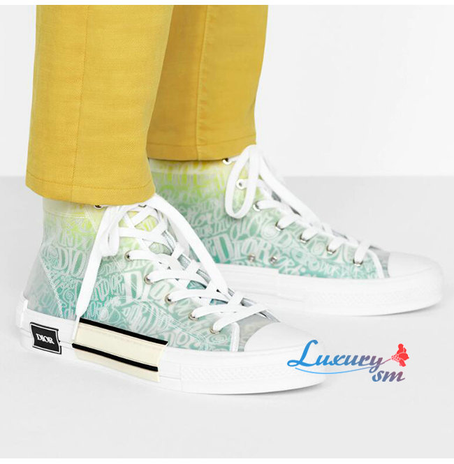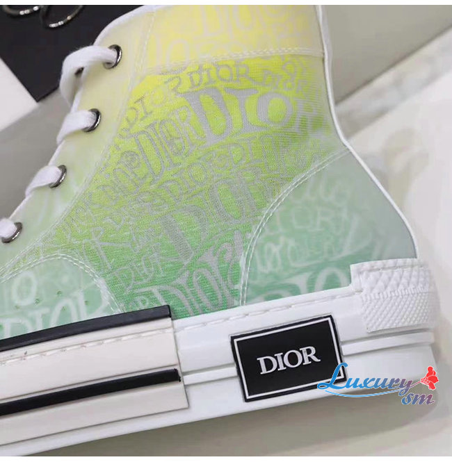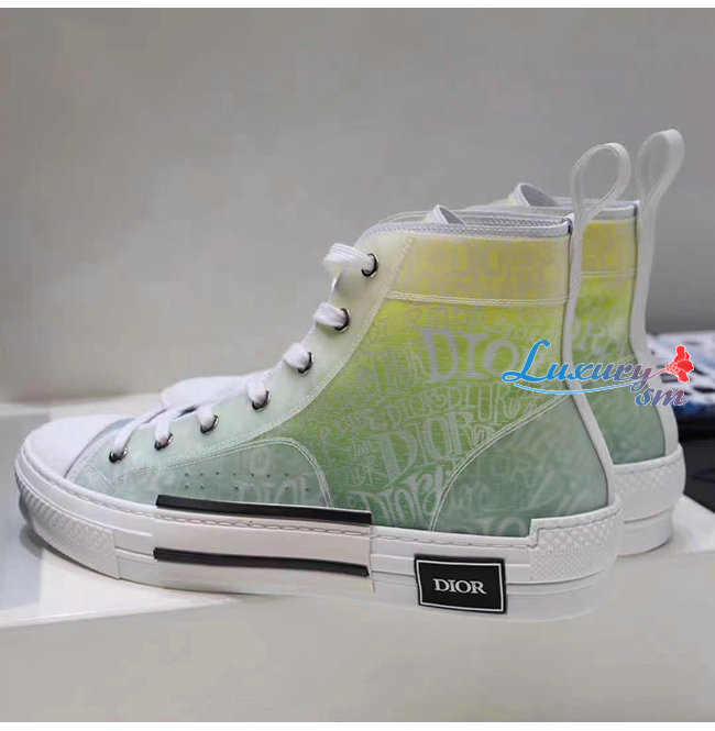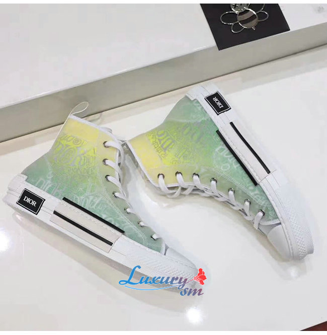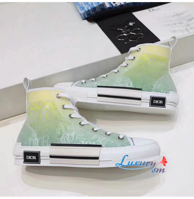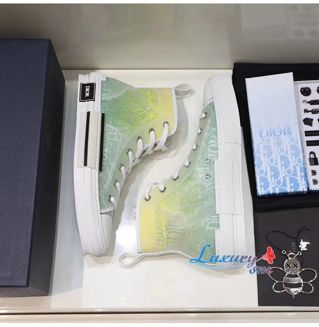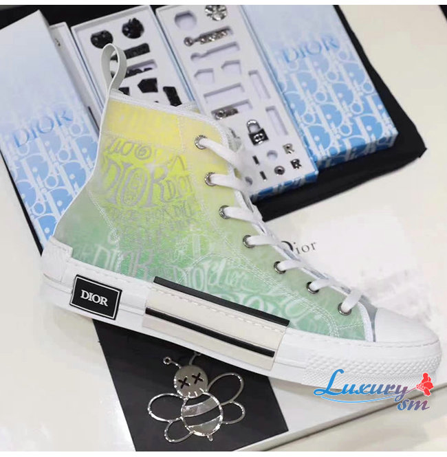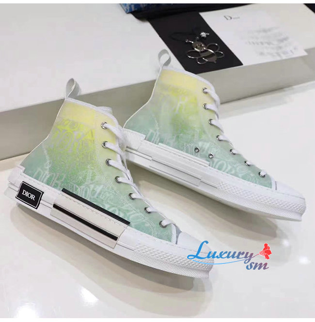 DIOR-3SH118 디올 옐로우/그린 DIOR AND SHAWN 모티브 캔버스 B23 하이탑 스니커즈 남여공용