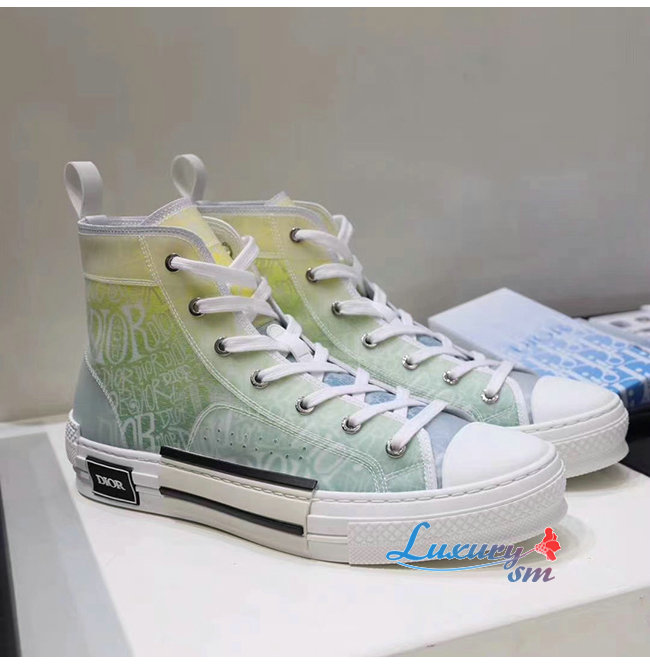 DIOR-3SH118 디올 그라데이션 블루 Dior Oblique 캔버스 B23 하이탑 스니커즈 남여공용