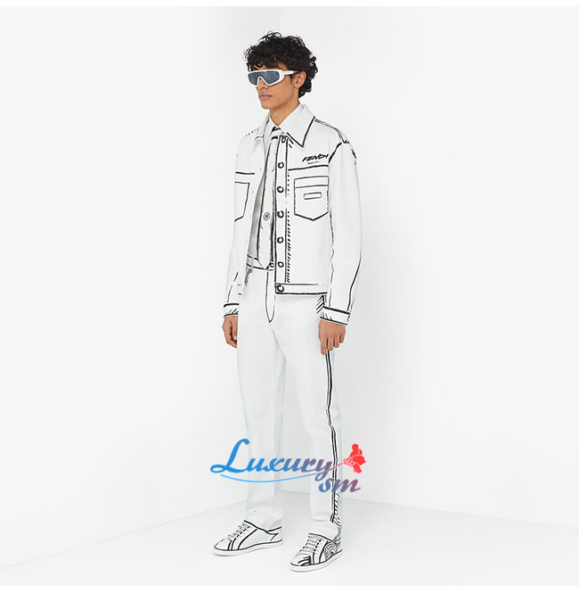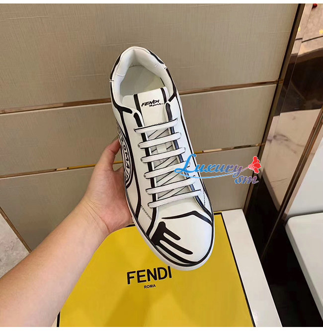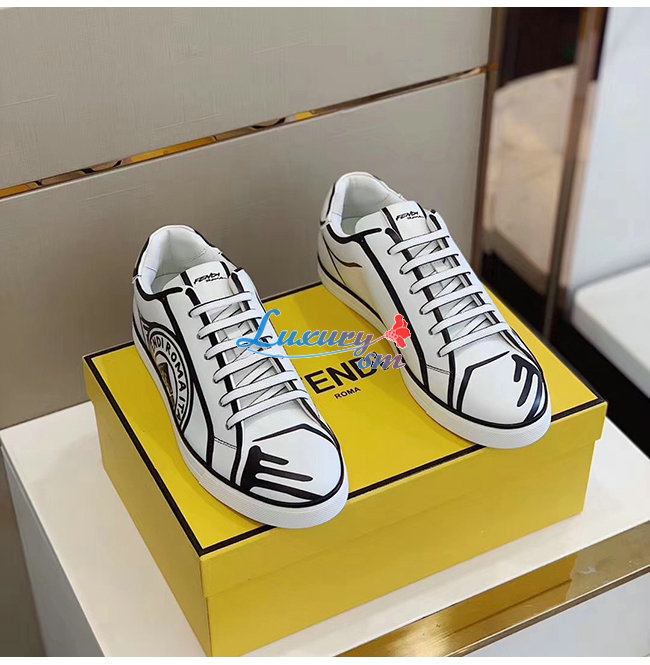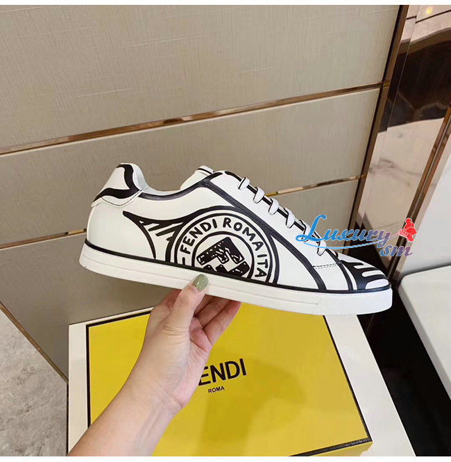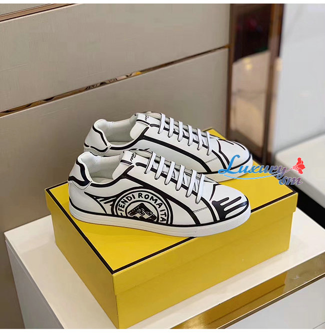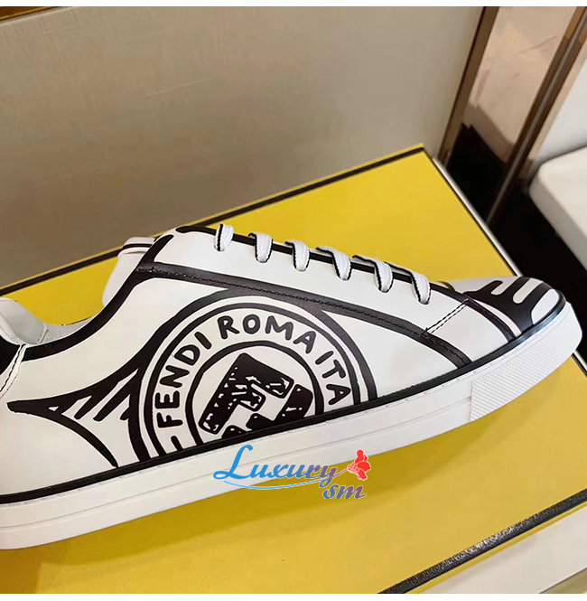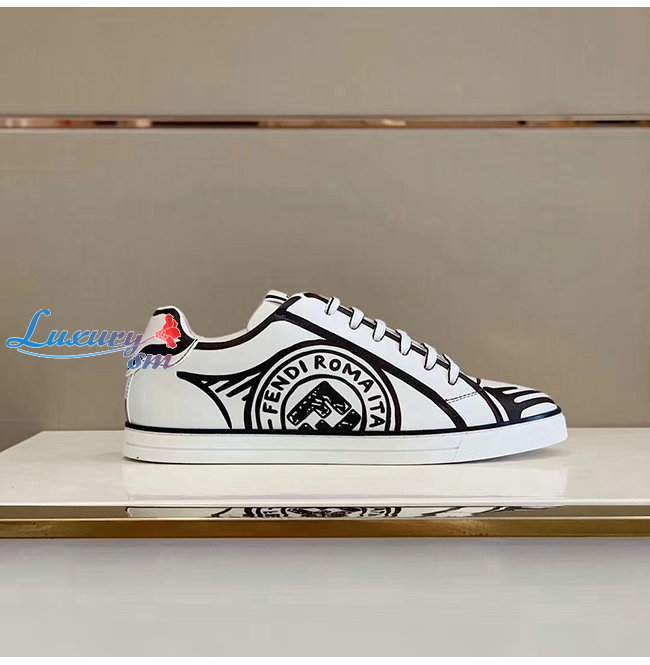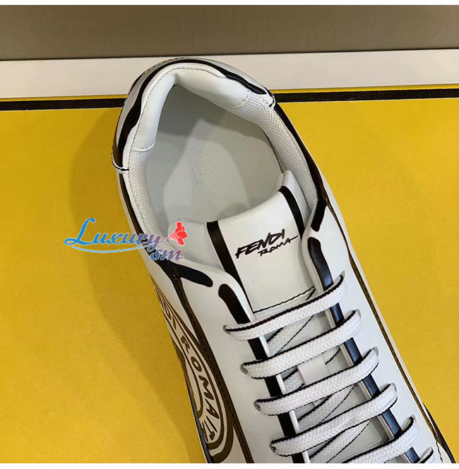 FENDI-7E1389 펜디 화이트 송아지 가죽 펜디 로마 조슈아 비데스 로우탑 스니커즈 남성용