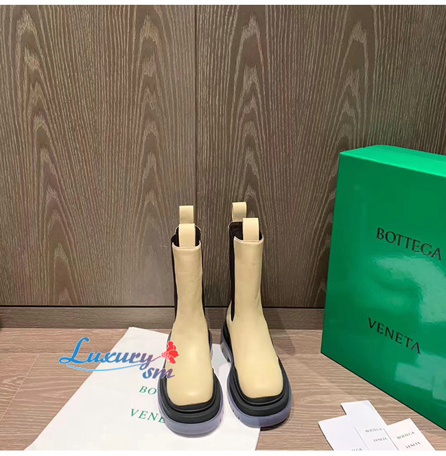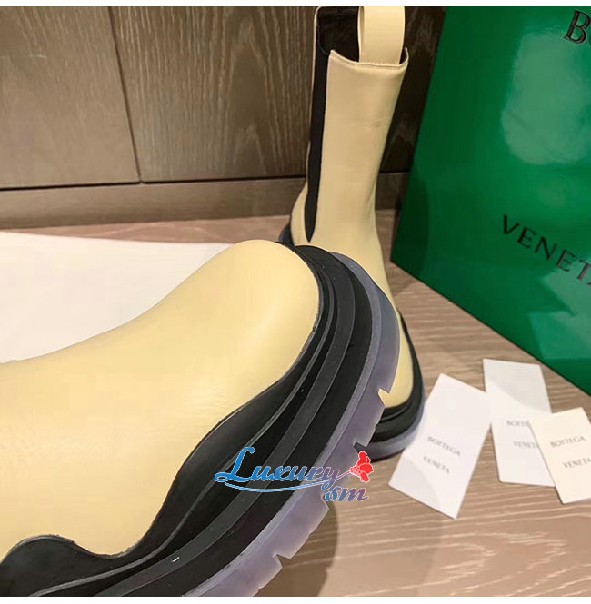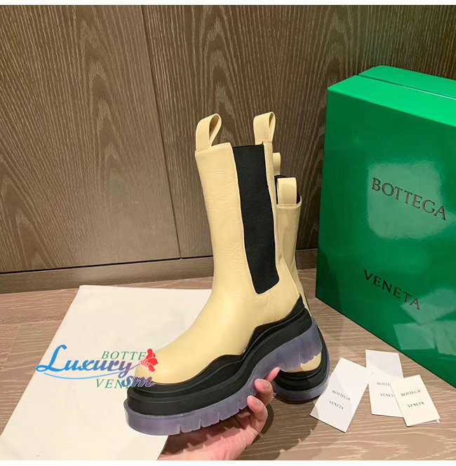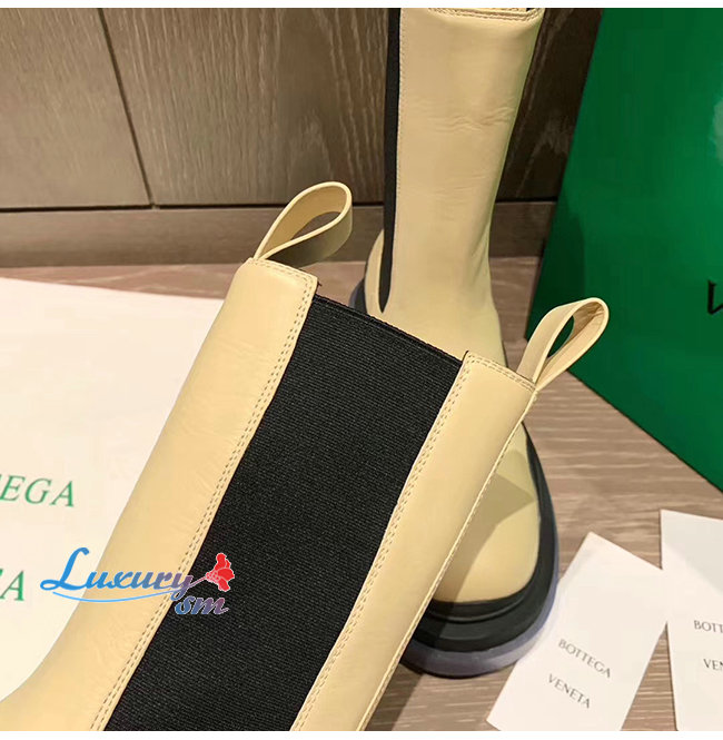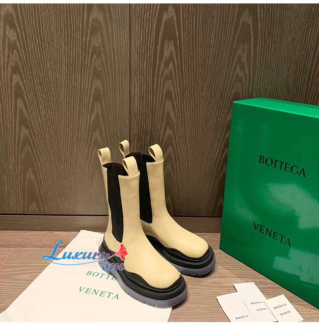 BOTTEGA VENETA-630297 보테가 베네타 버터/블랙 송아지 가죽 BV 타이어 부츠 여성용