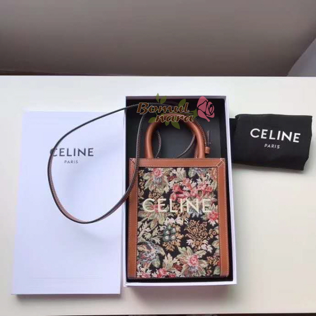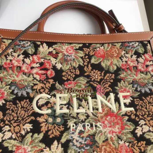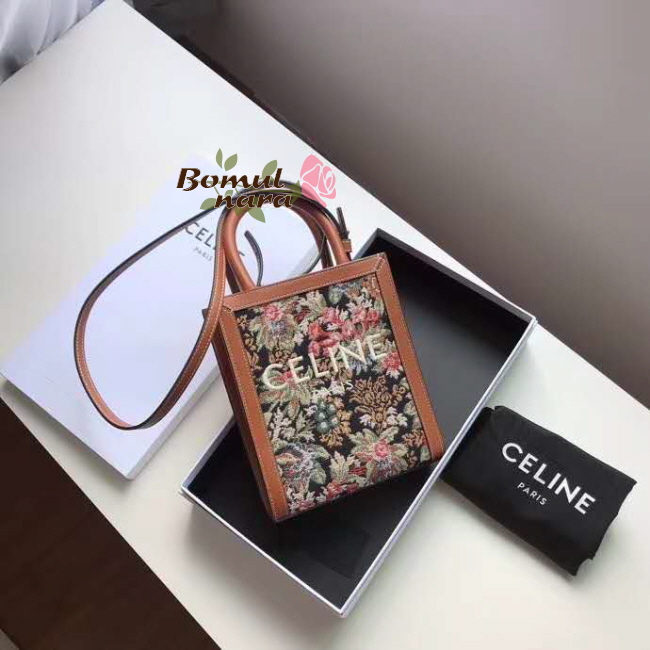 [스페셜오더]CELINE-192082 셀린느 탄 플로럴 자카드 스몰 버티컬 카바스 백
