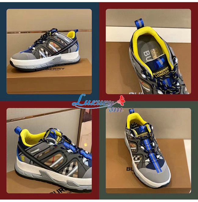 BURBERRY-80240451 버버리 네이비 레더 메시 유니언 스니커즈