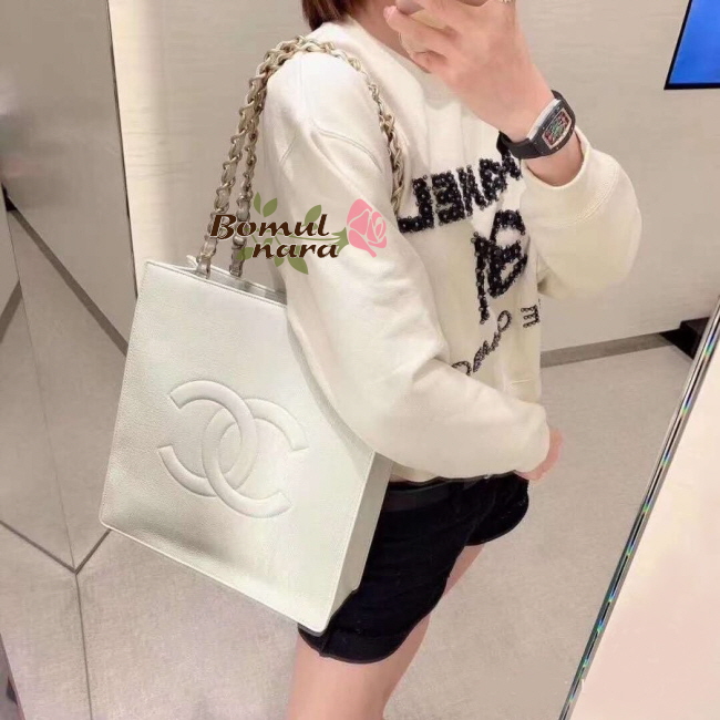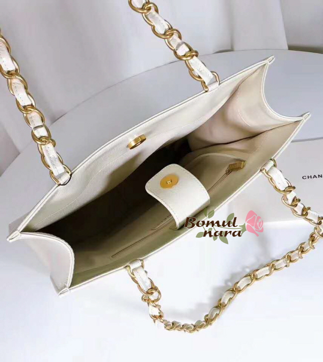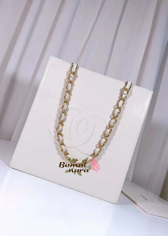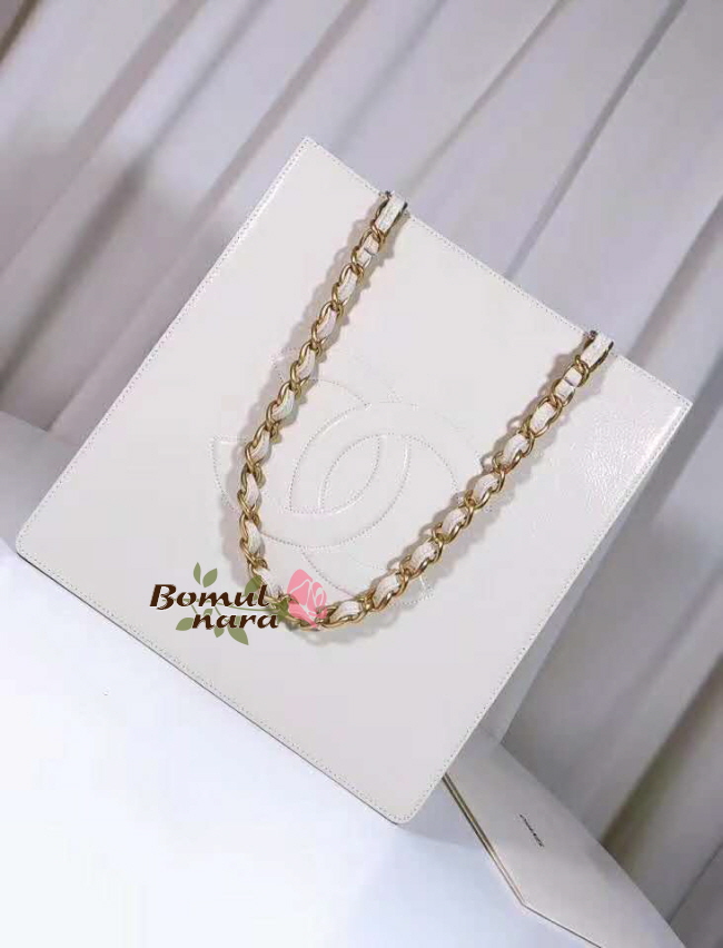 [스페셜오더]CHANEL-AS1945 샤넬 화이트 유광 빈티지 골드 메탈 쇼핑백