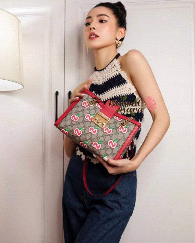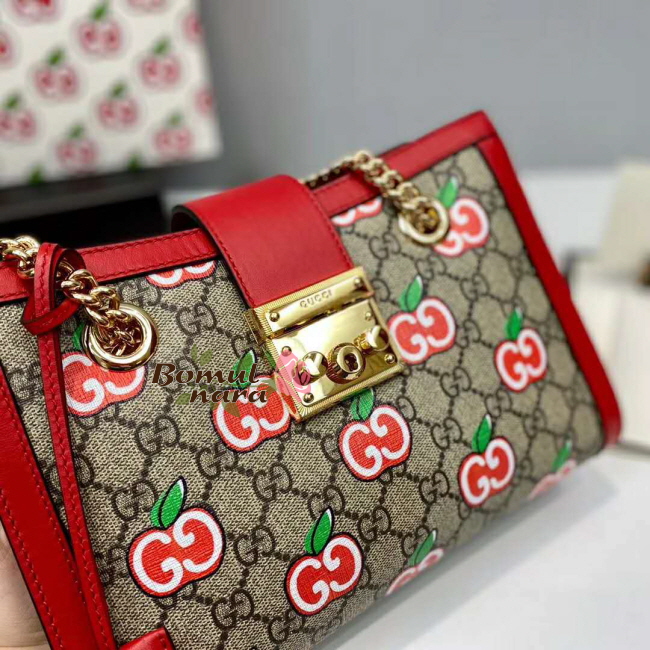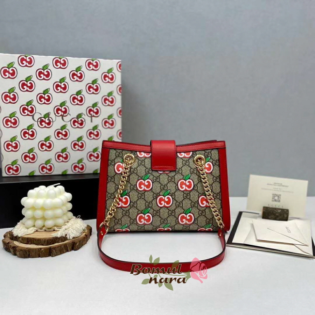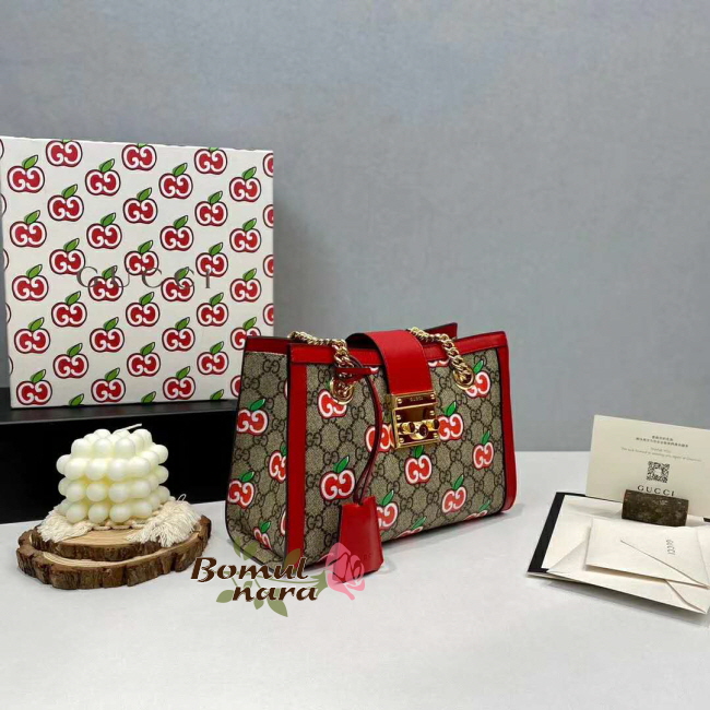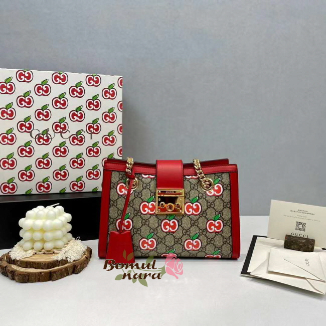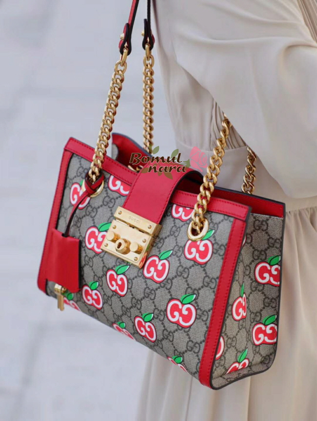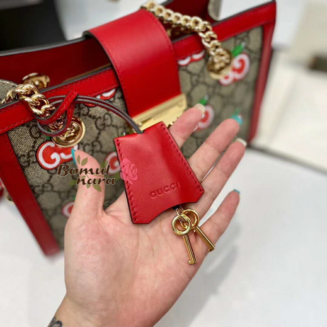 [스페셜오더]GUCCI-498156 8646 구찌 [패들락] GG 애플 프린트 스몰 숄더백