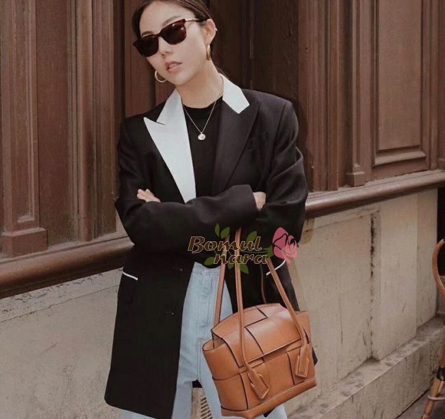 [스페셜오더]BOTTEGA VENETA-575943 보테가 베네타 네로 인트레치아토 패턴 Arco 아르코 33 탑 핸들백