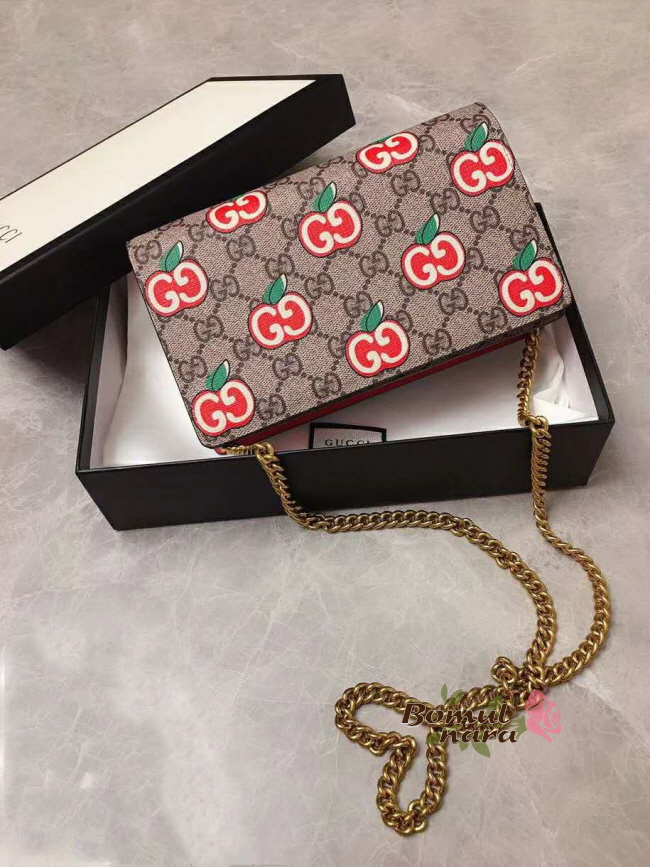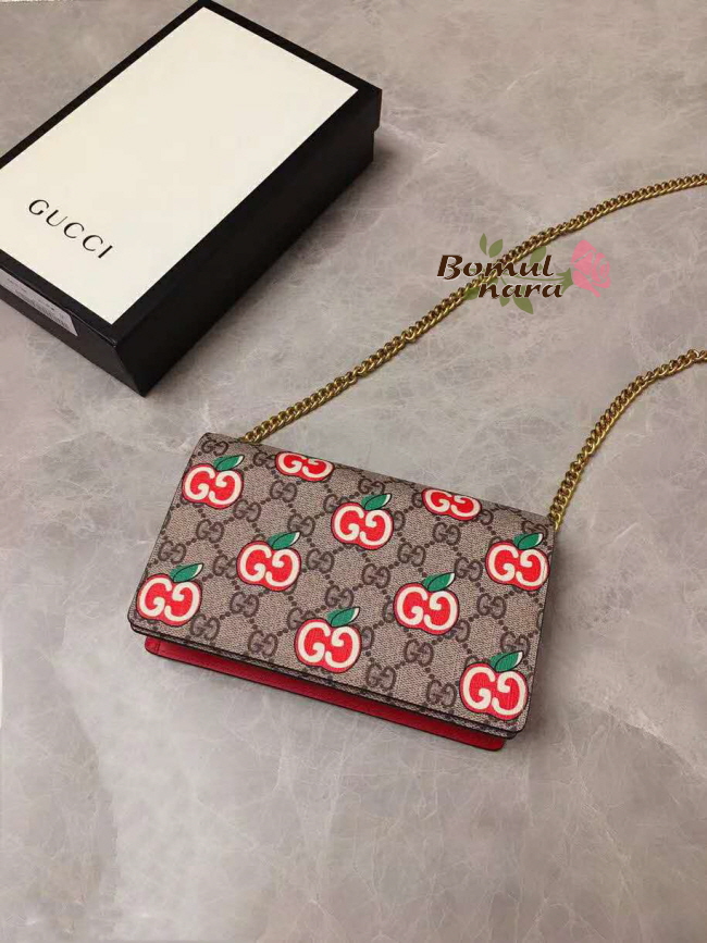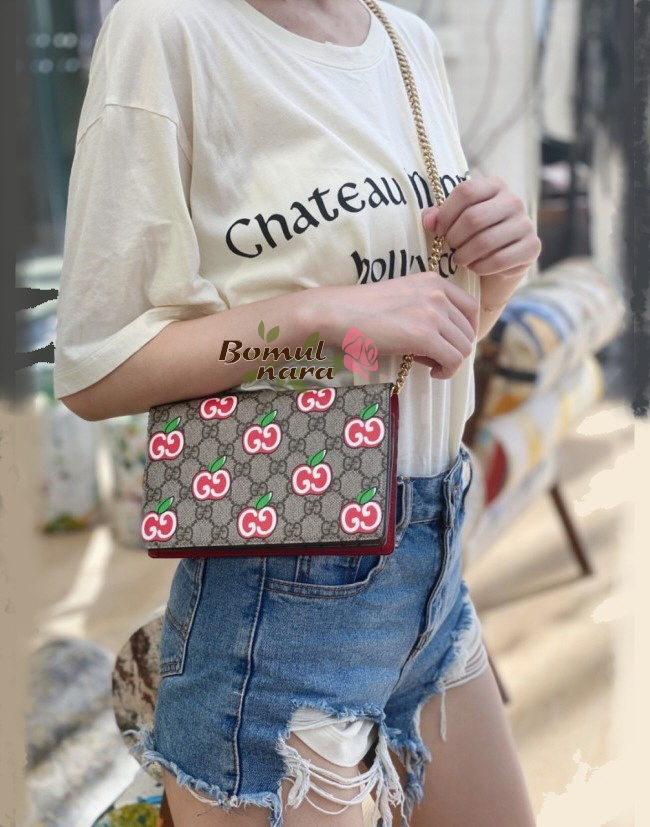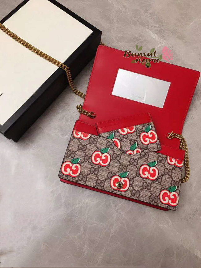 [스페셜오더]GUCCI-634275 8646 구찌 차이니스 발렌타이 데이 GG 애플 프린트 카드 케이스 체인 월릿