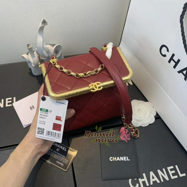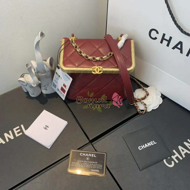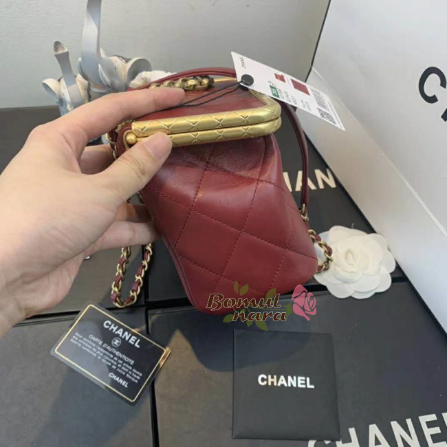 [스페셜오더]CHANEL-AS1886 샤넬 레드 램스킨 골드 메탈 미디엄 키스락 백