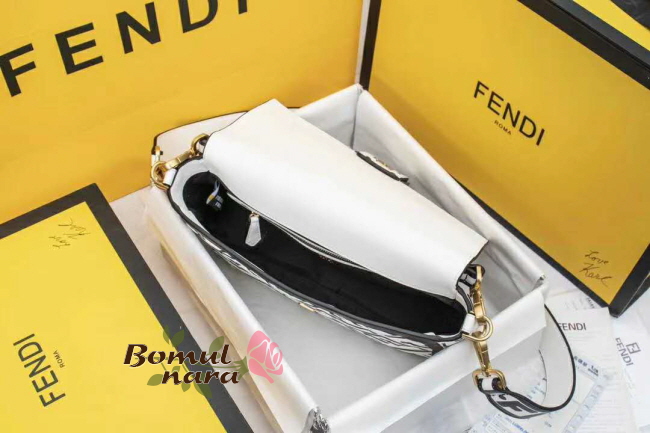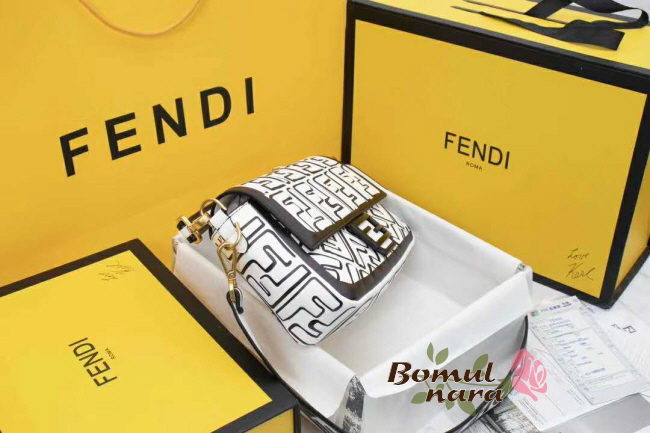 [스페셜오더]FENDI-8BR600 펜디 화이트 FF 모티프 양가죽 미디엄 바게트백