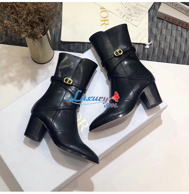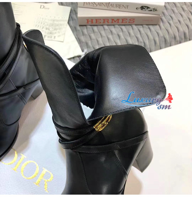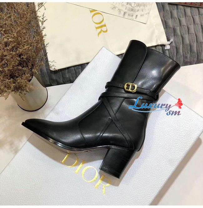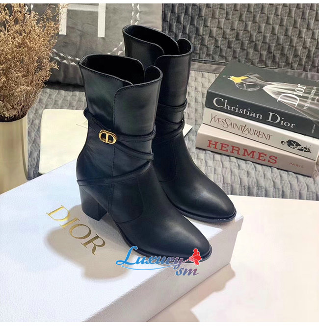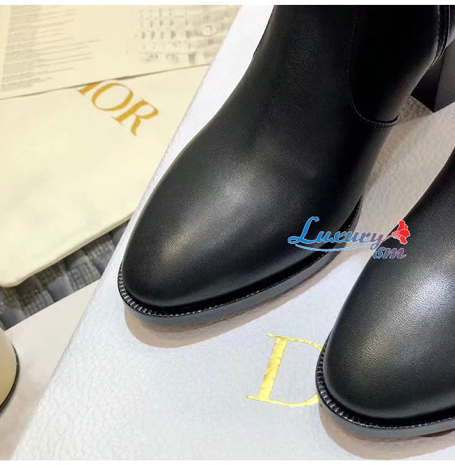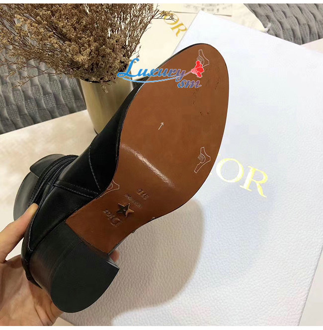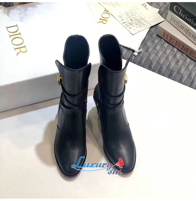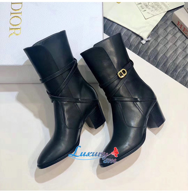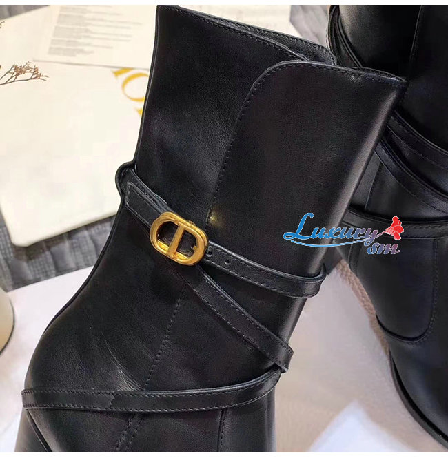 DIOR-KDI609 디올 블랙 송아지 가죽 DIOR EMPREINTE 힐 앵클 부츠 여성용