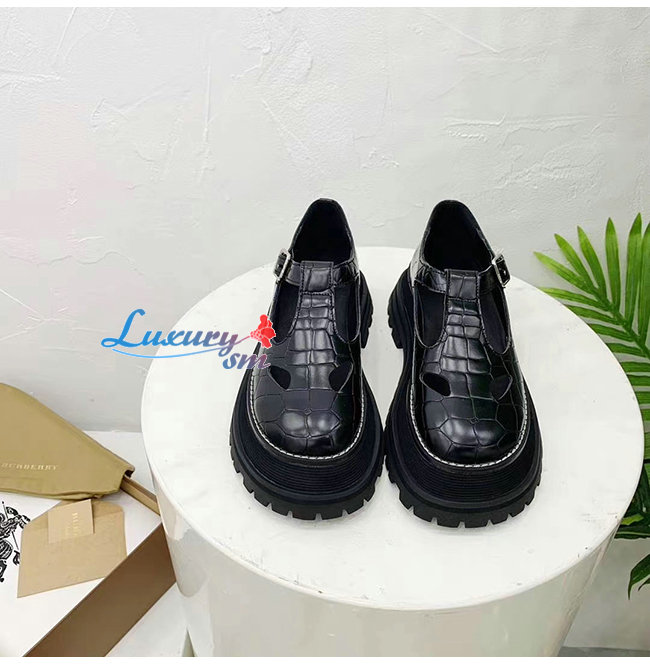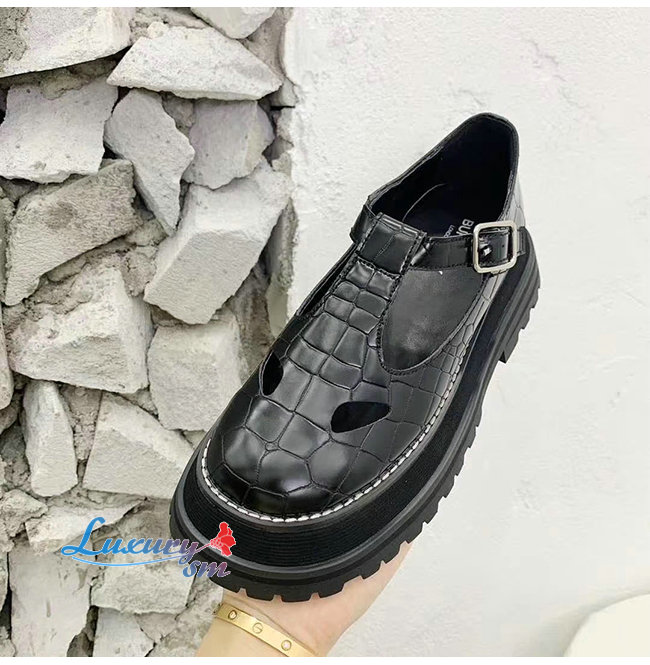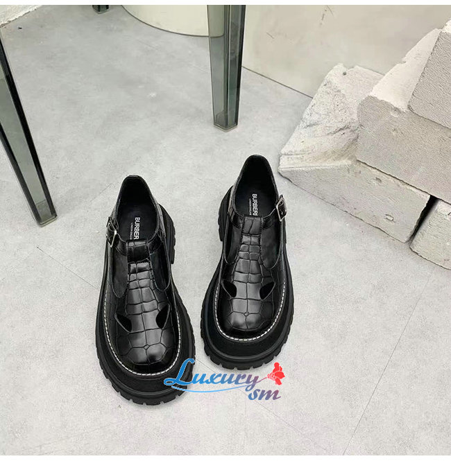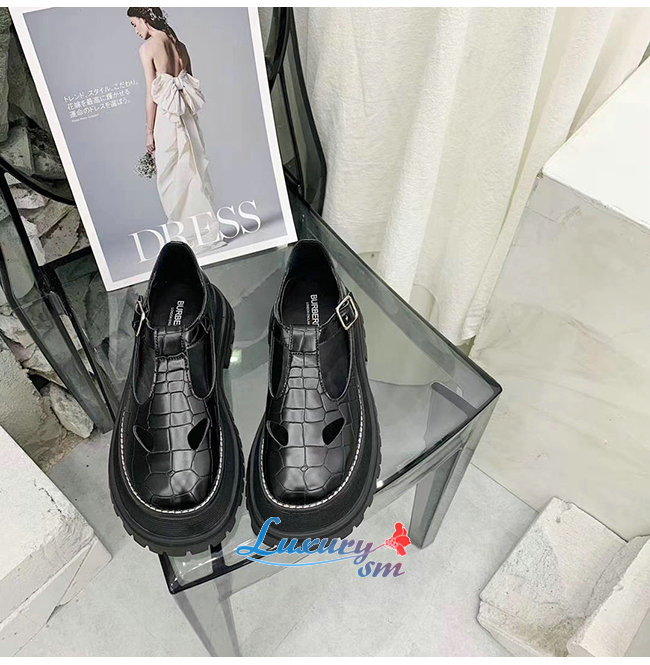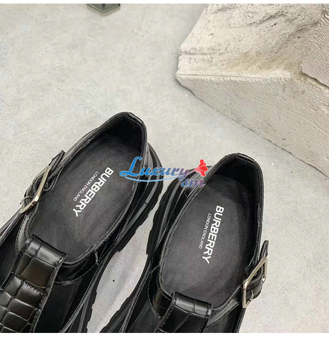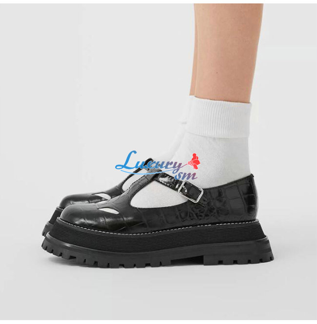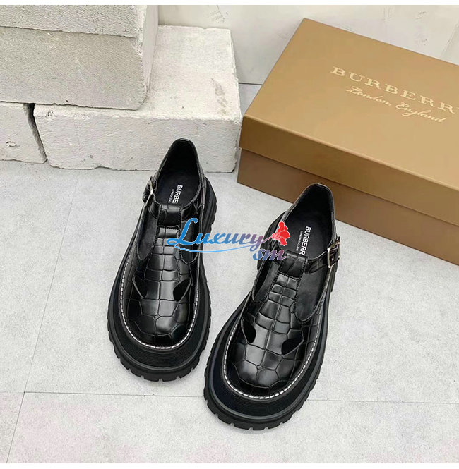 BURBERRY-80119301 버버리 블랙 엠보싱 송아지 가죽 T바 슈즈