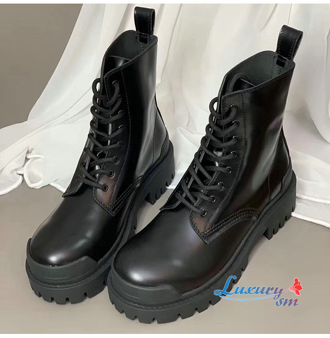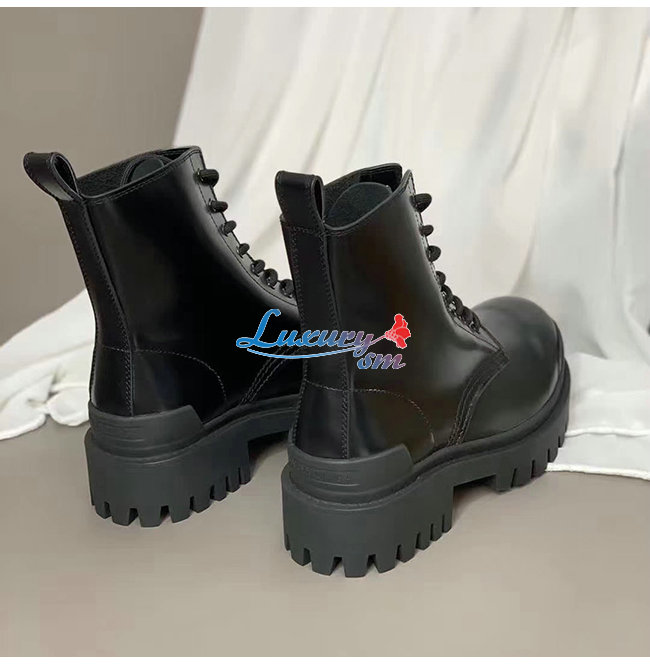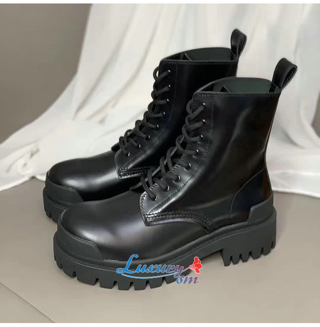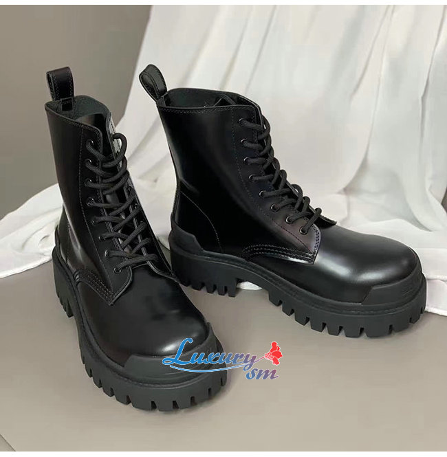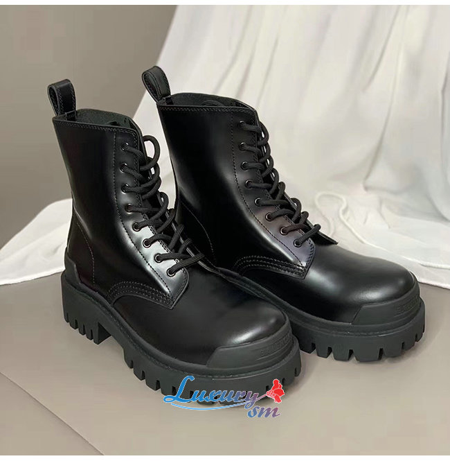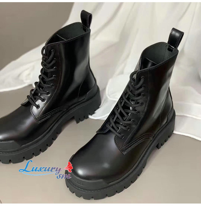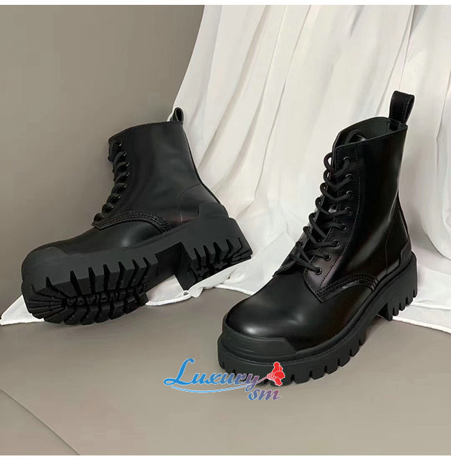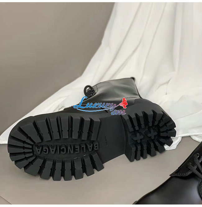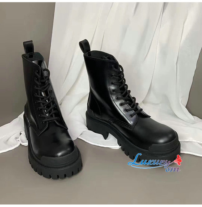 BALENCIAGA-590974 발렌시아가 블랙 송아지 가죽 스트라이크 레이스업 부츠 여성용