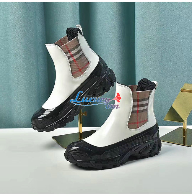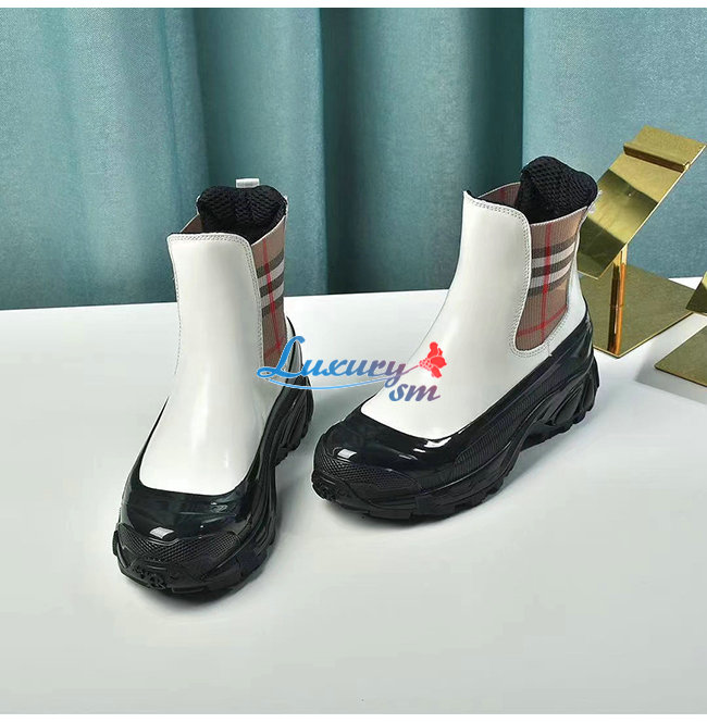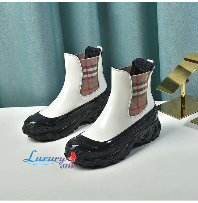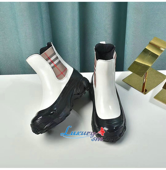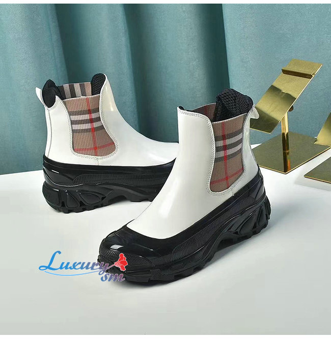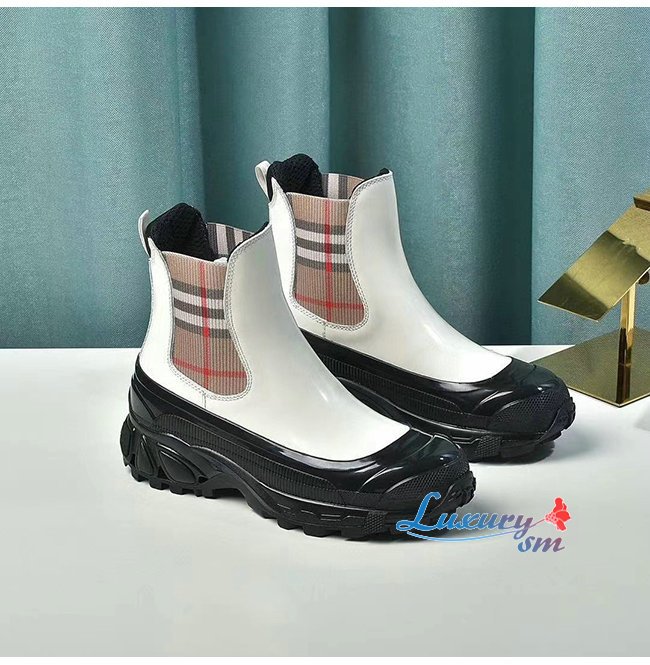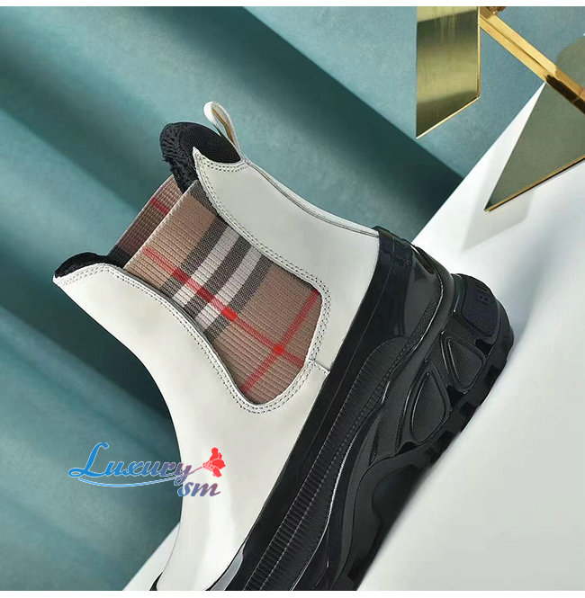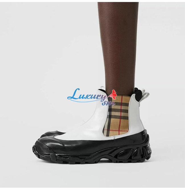 BURBERRY-80206491 버버리 화이트 빈티지 체크 디테일 코팅 캔버스 첼시 부츠