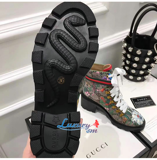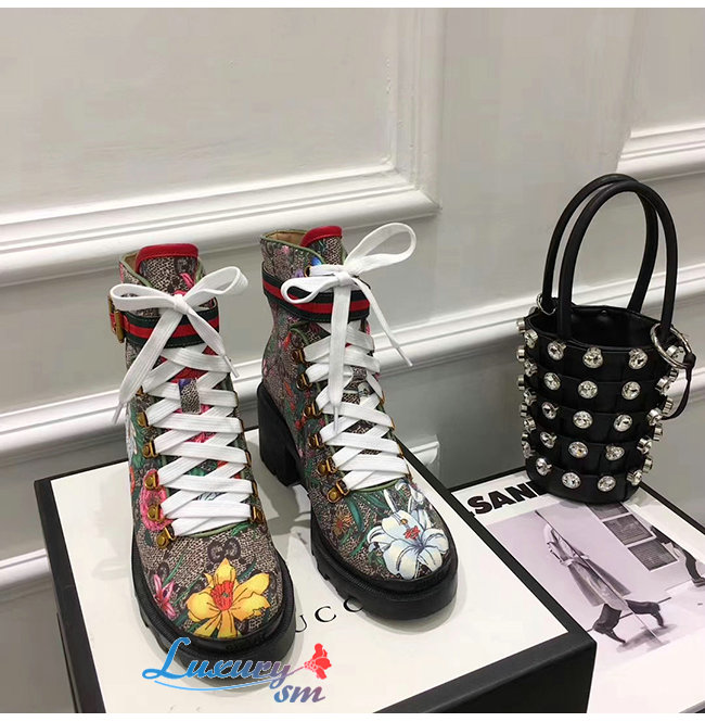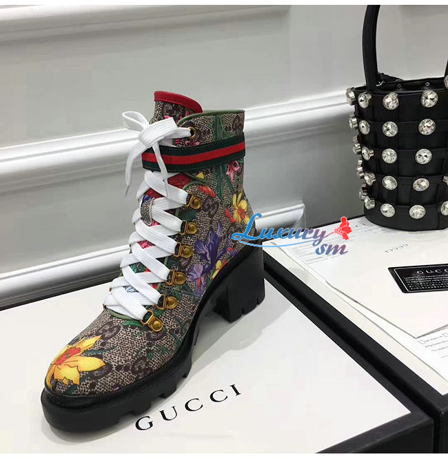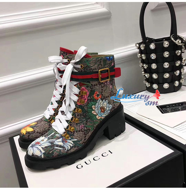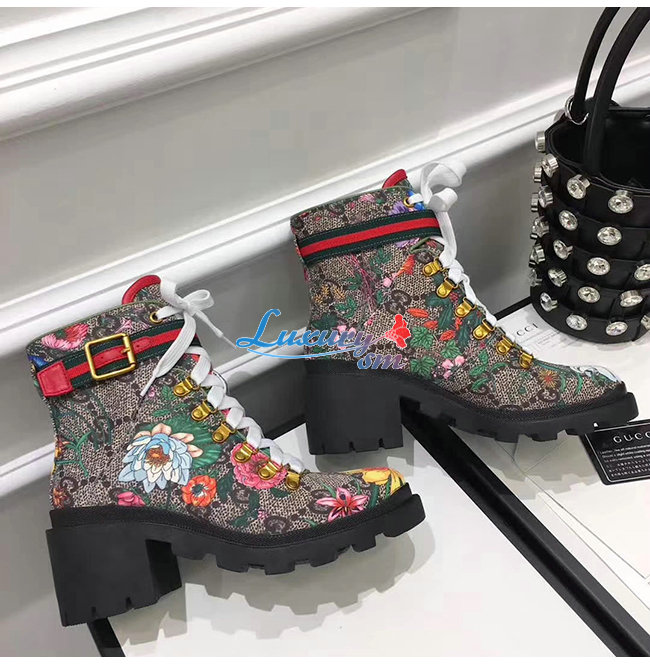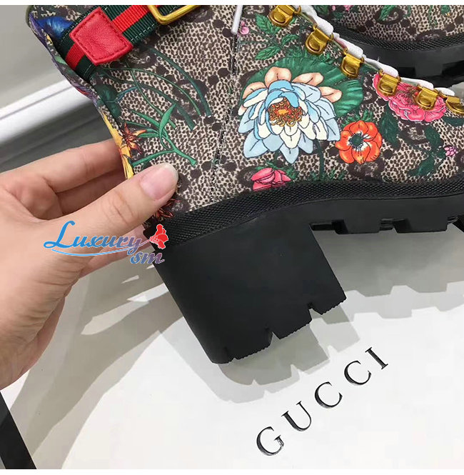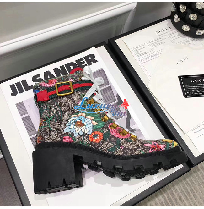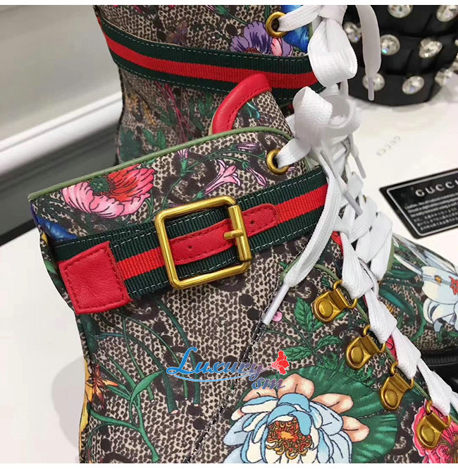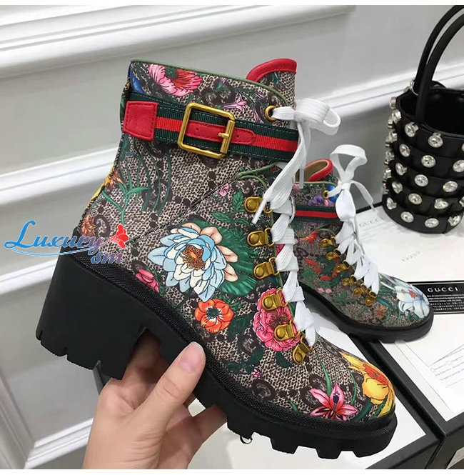 GUCCI-602184 8494 구찌 베이지 GG 수프림 캔버스 플로라 앵클 부츠